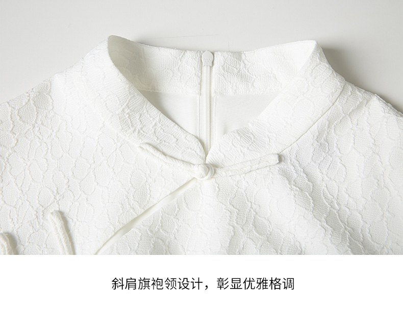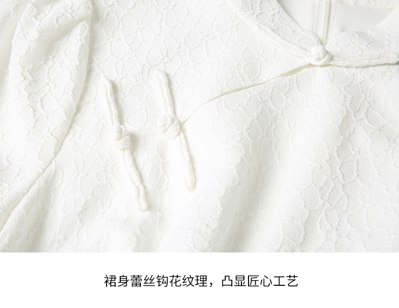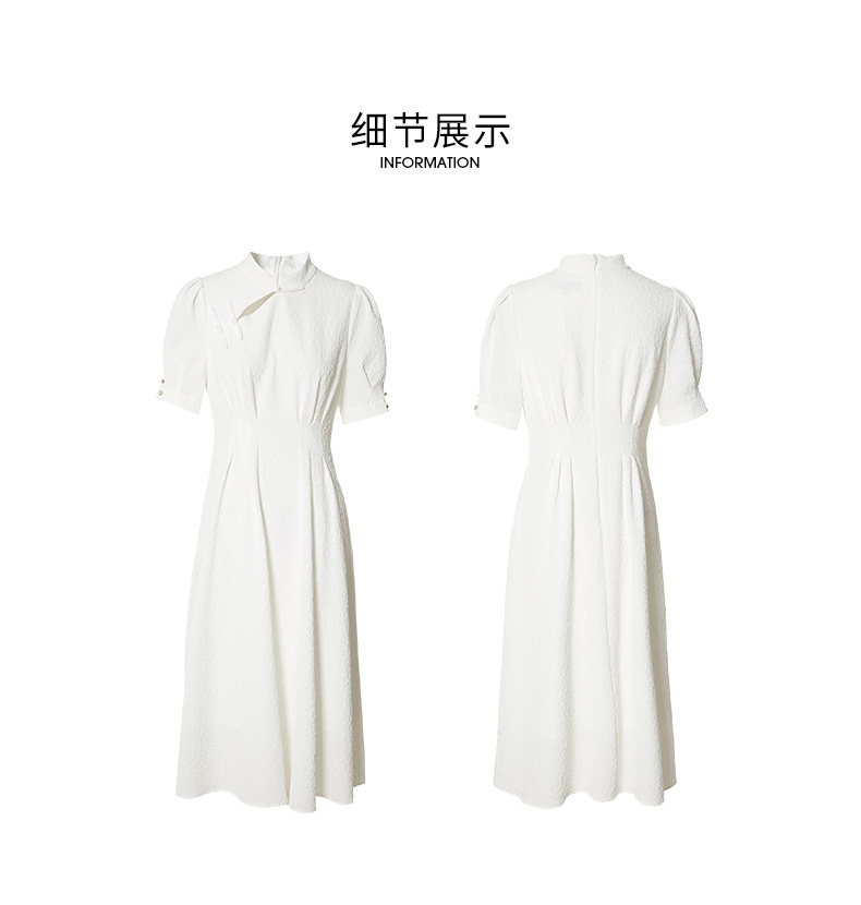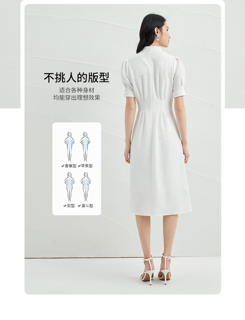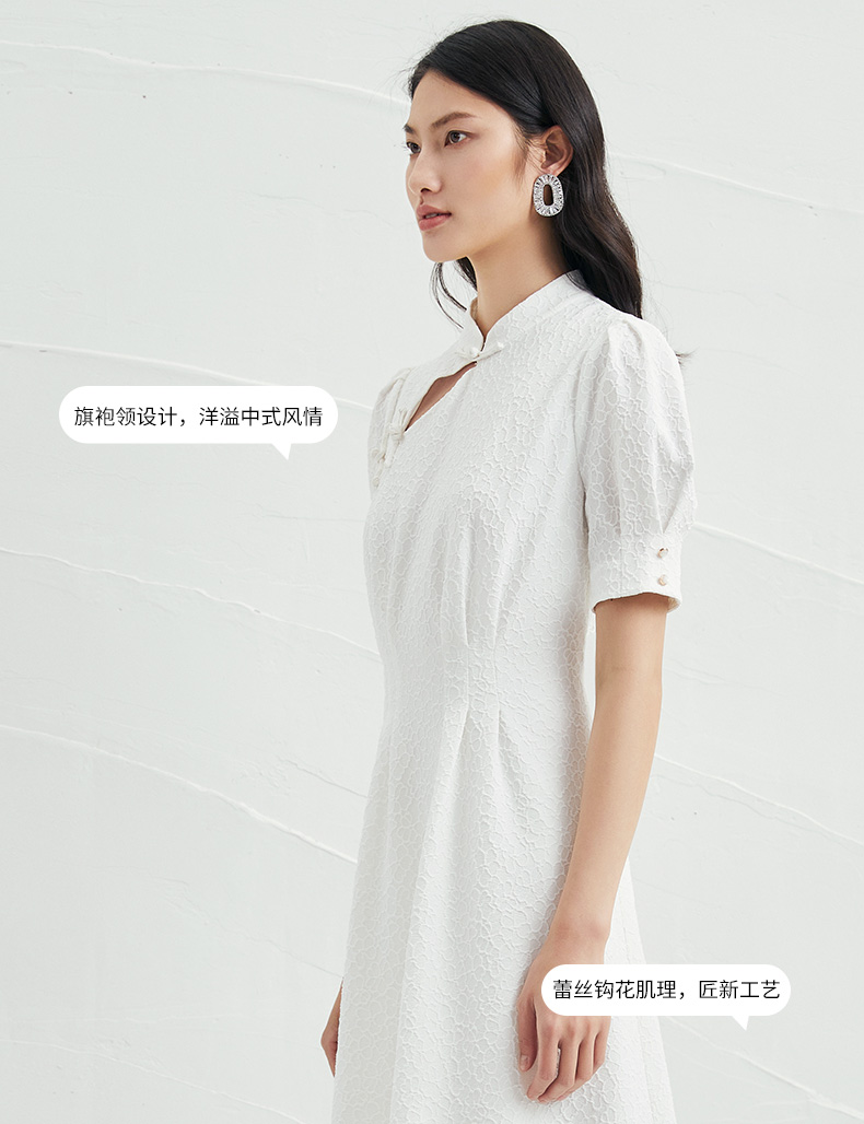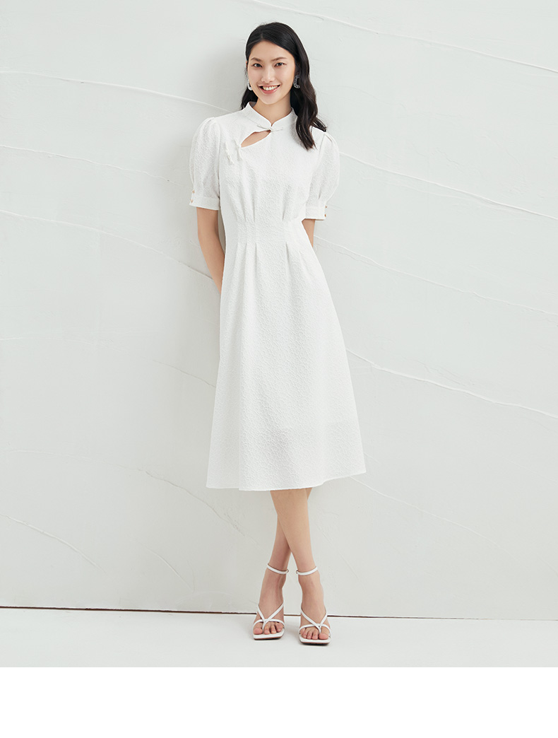 EITIE爱特爱夏新款时尚显瘦通勤气质中式立领收腰白色连衣裙B2207928