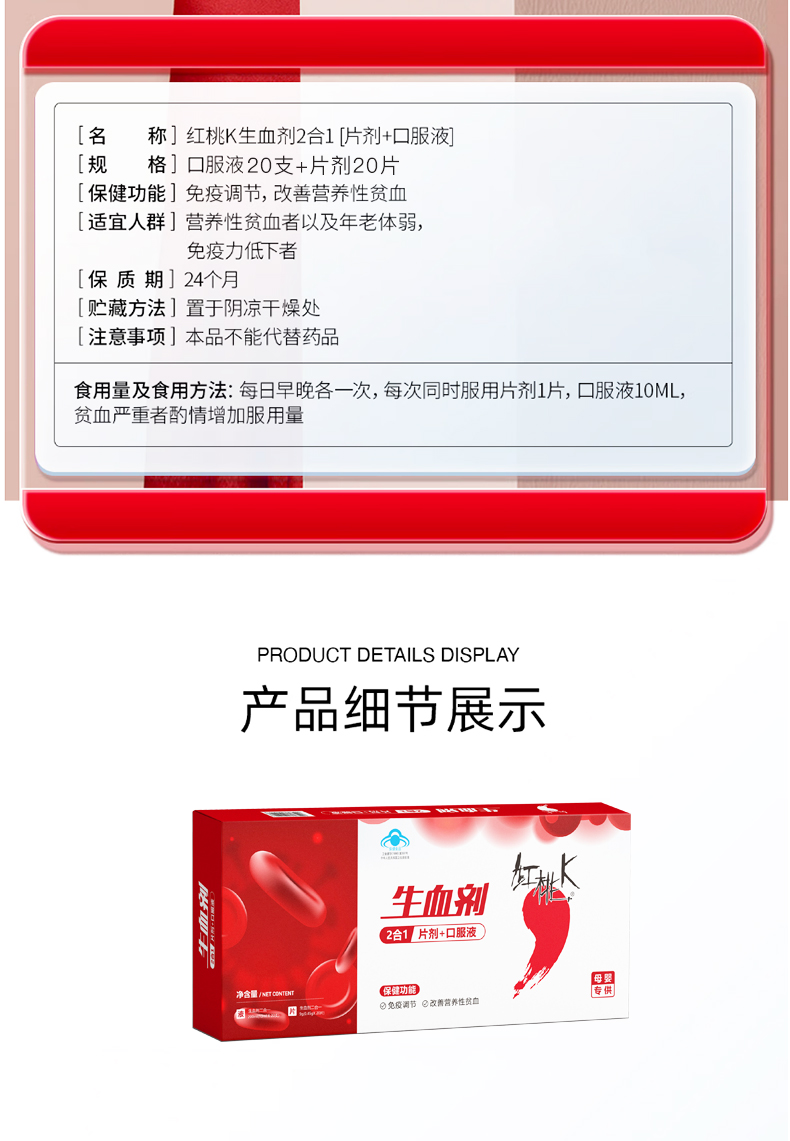 红桃K 生血剂补血口服液(口服液20支+片剂20片) 成人孕妇中老年补铁补血 改善贫血送礼佳品