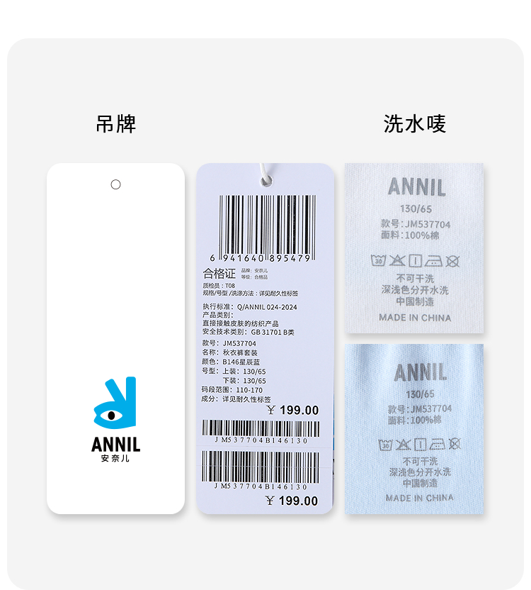 【100%纯棉/秋衣裤套装】男女童秋衣裤套装秋季新款安奈儿童装JM537704