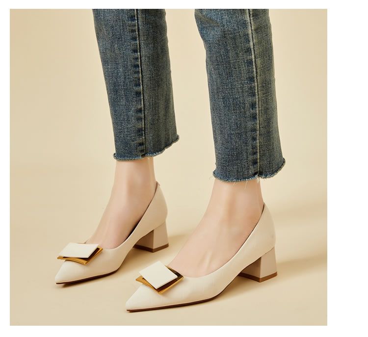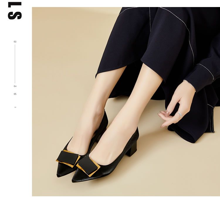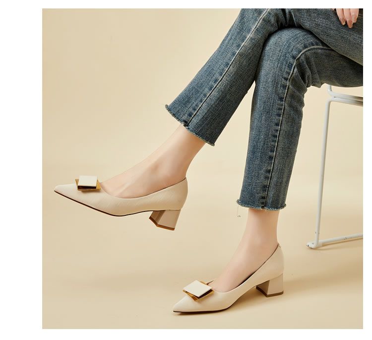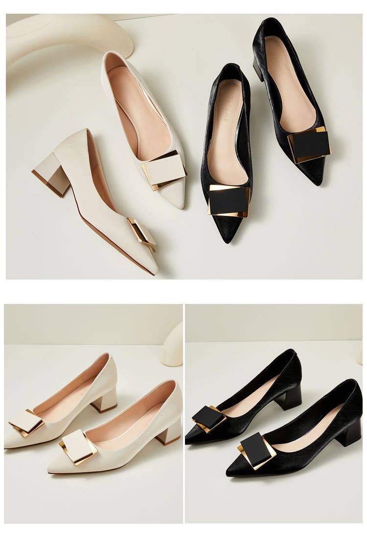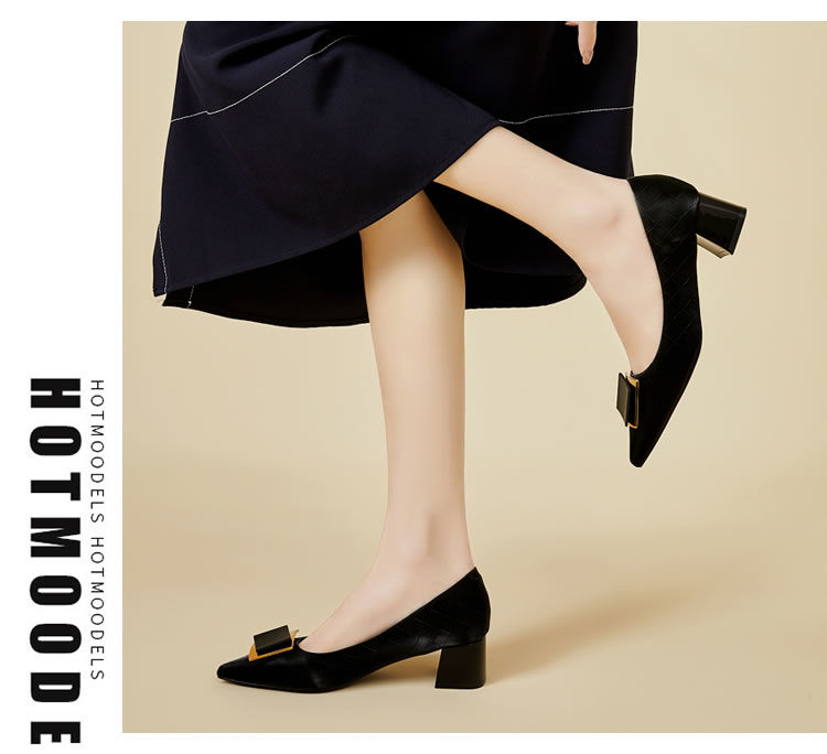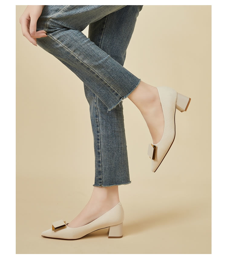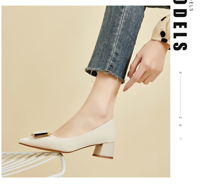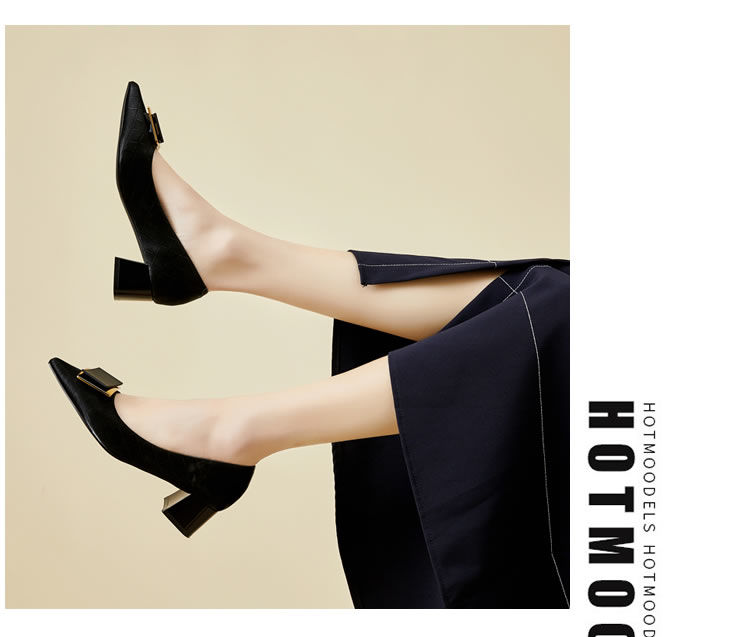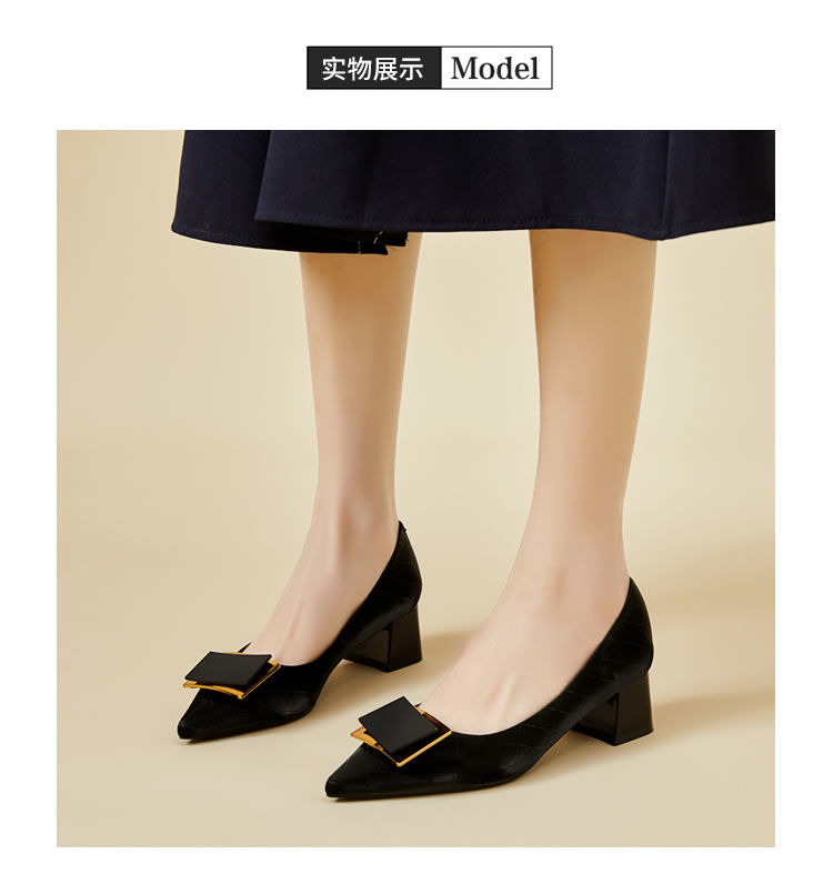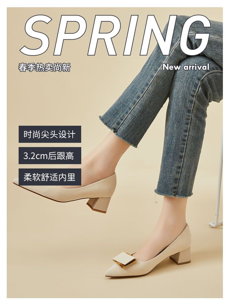 DD-气质高跟鞋女低粗跟配裙子尖头优雅法式单鞋3cm软皮不磨脚
