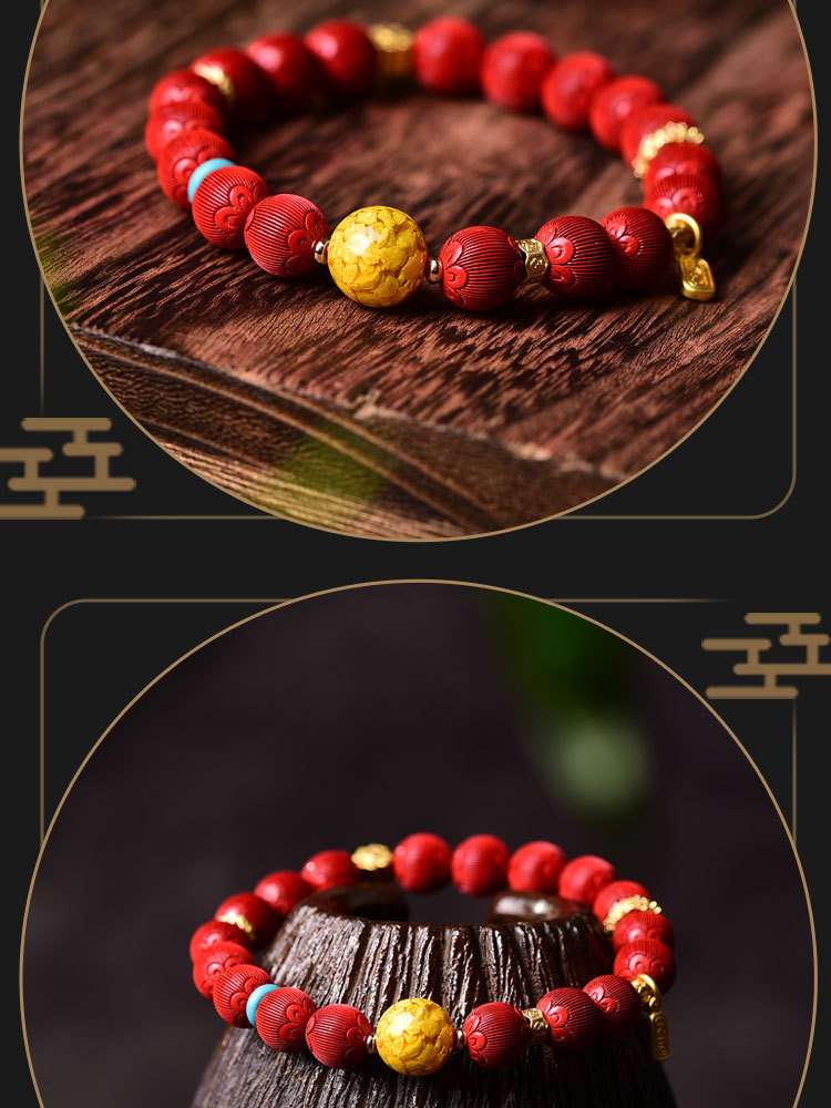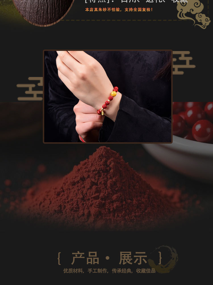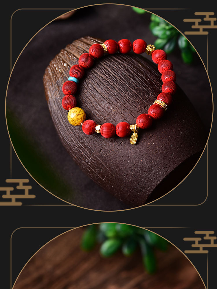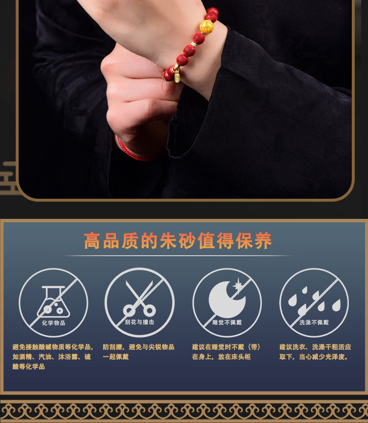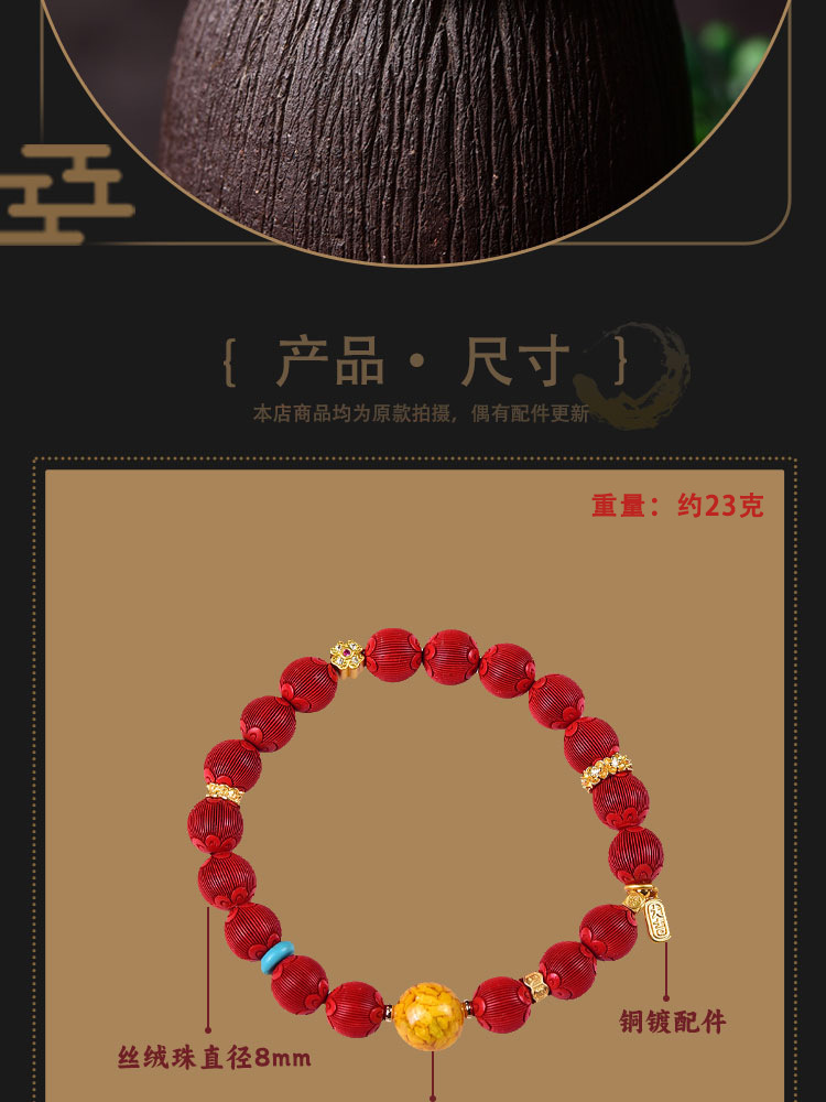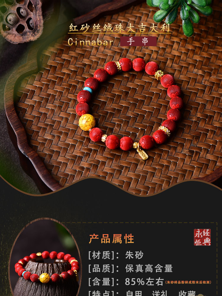 丁摩 朱砂精品高含量手串拉丝绒灯笼圆珠手链女原石本命年5ZF-54566
