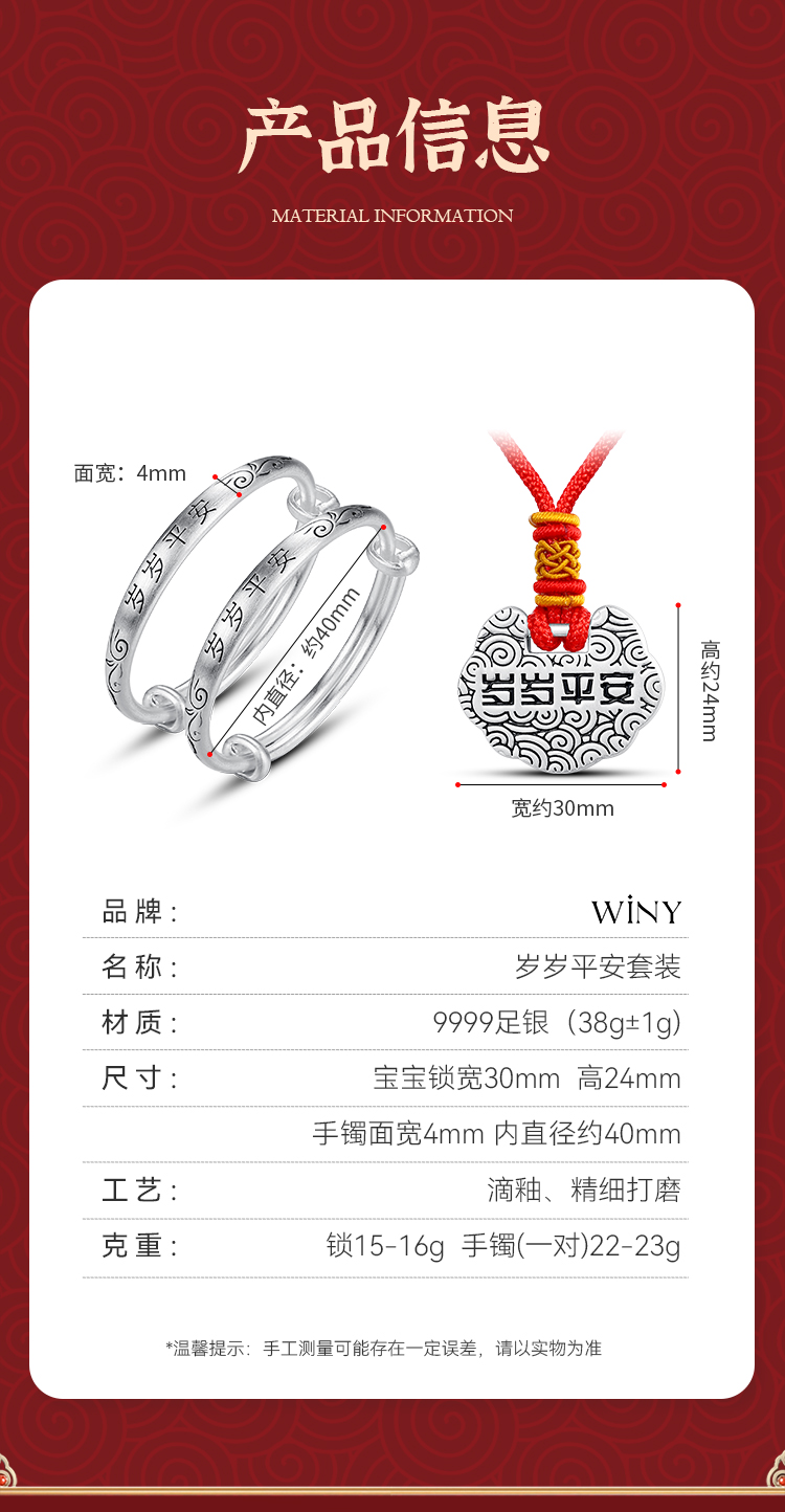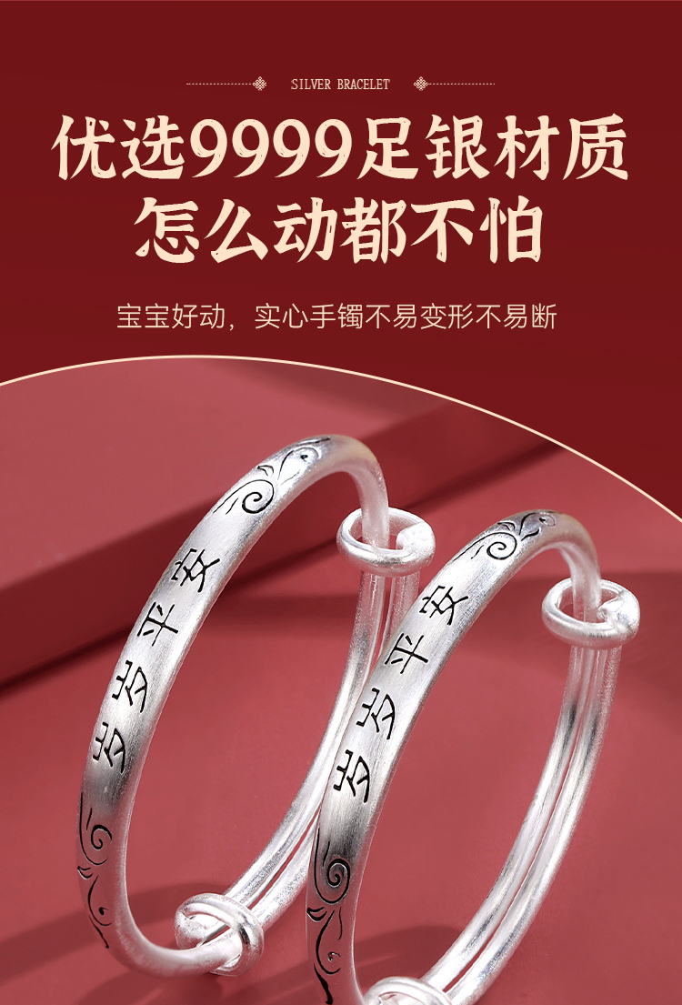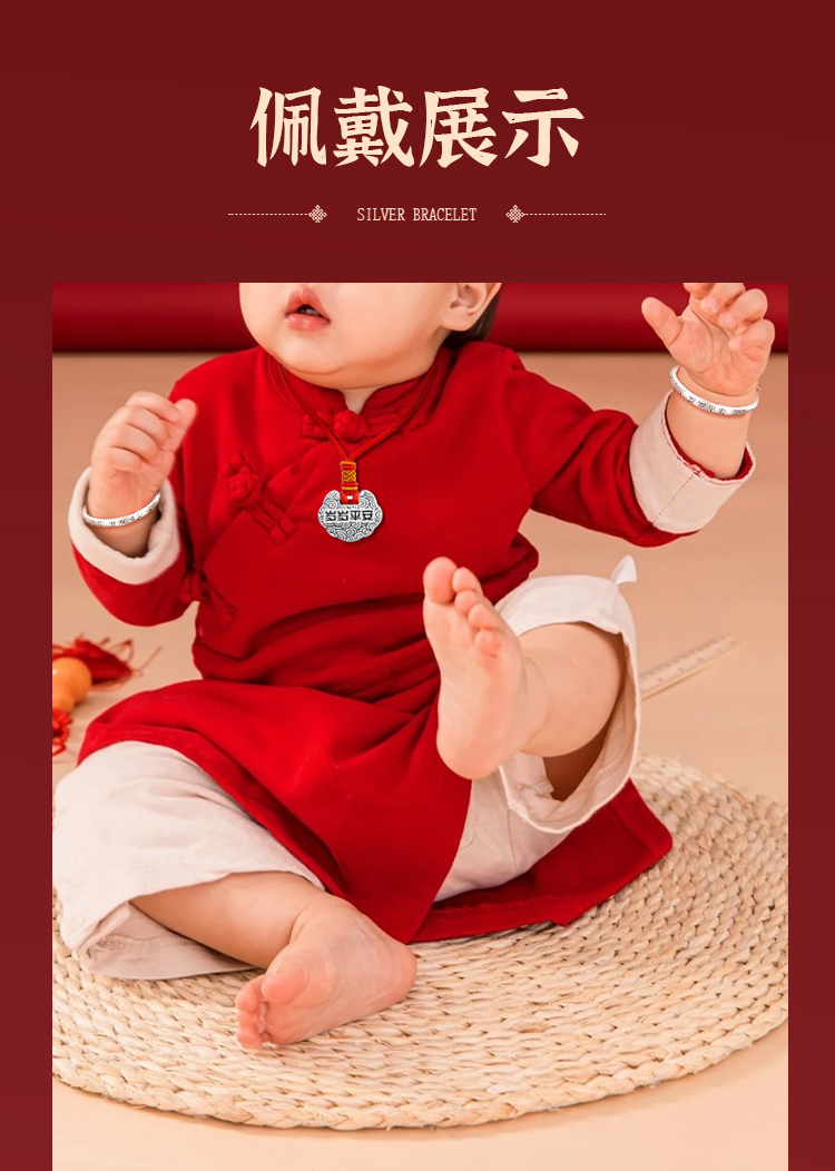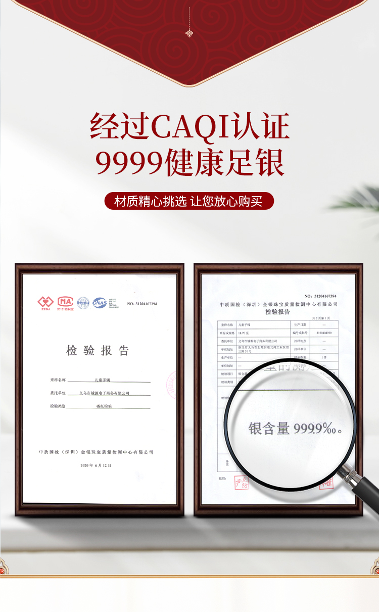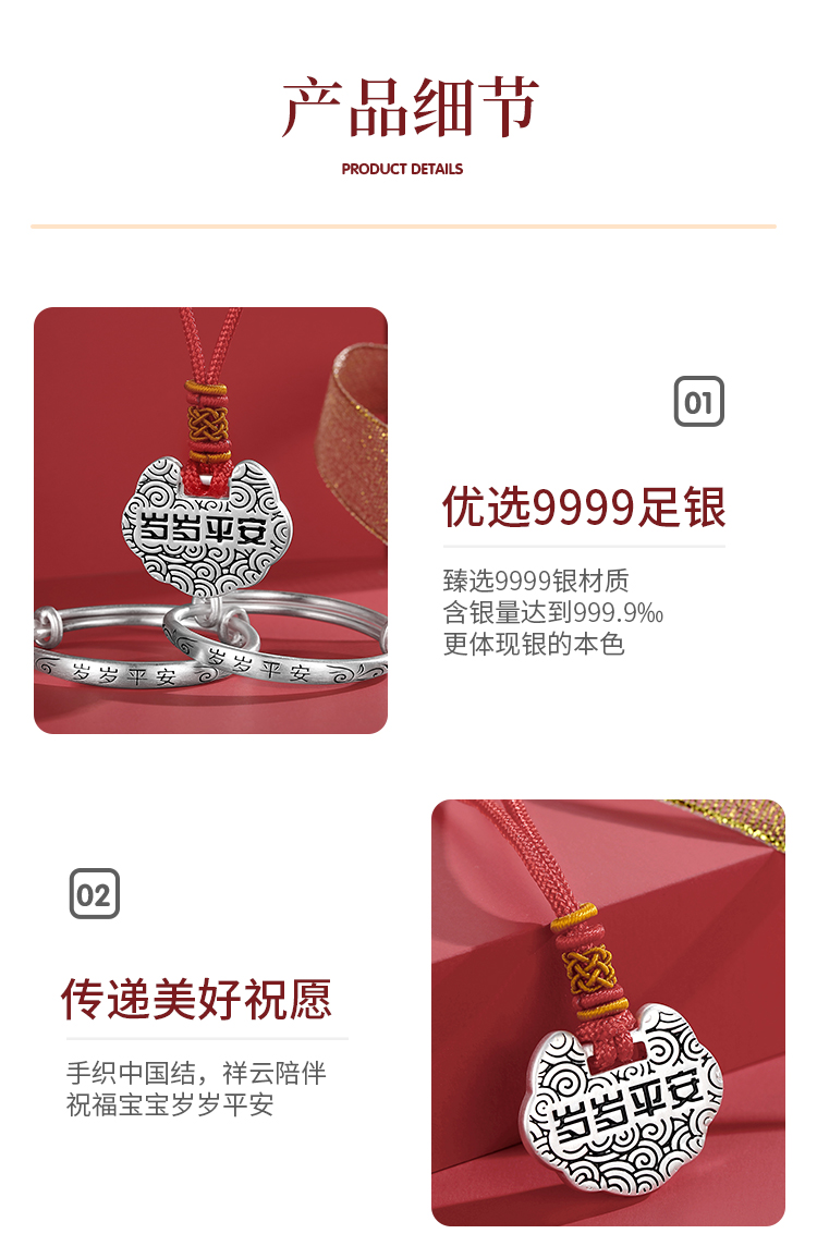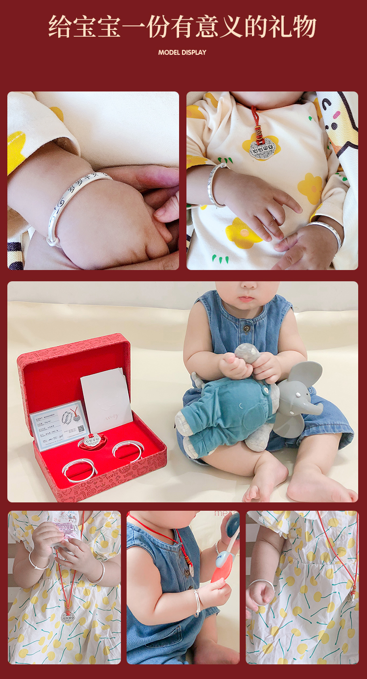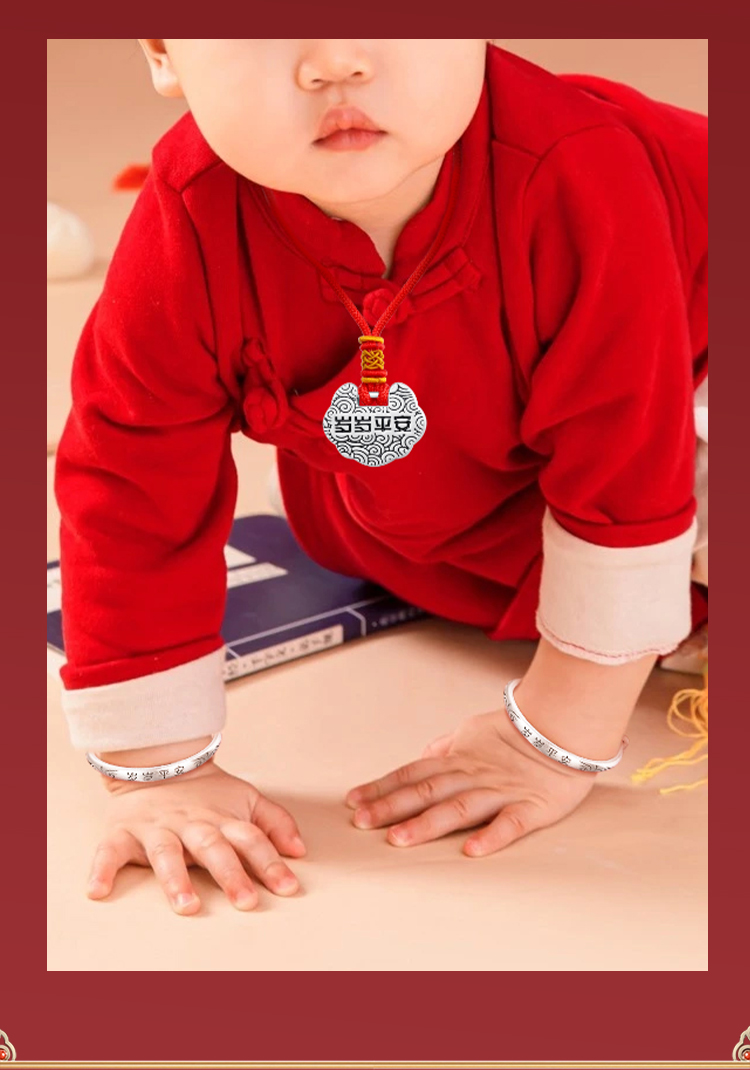 Winy9999足银宝宝套装岁岁平安配证书送礼百天满月生日礼物