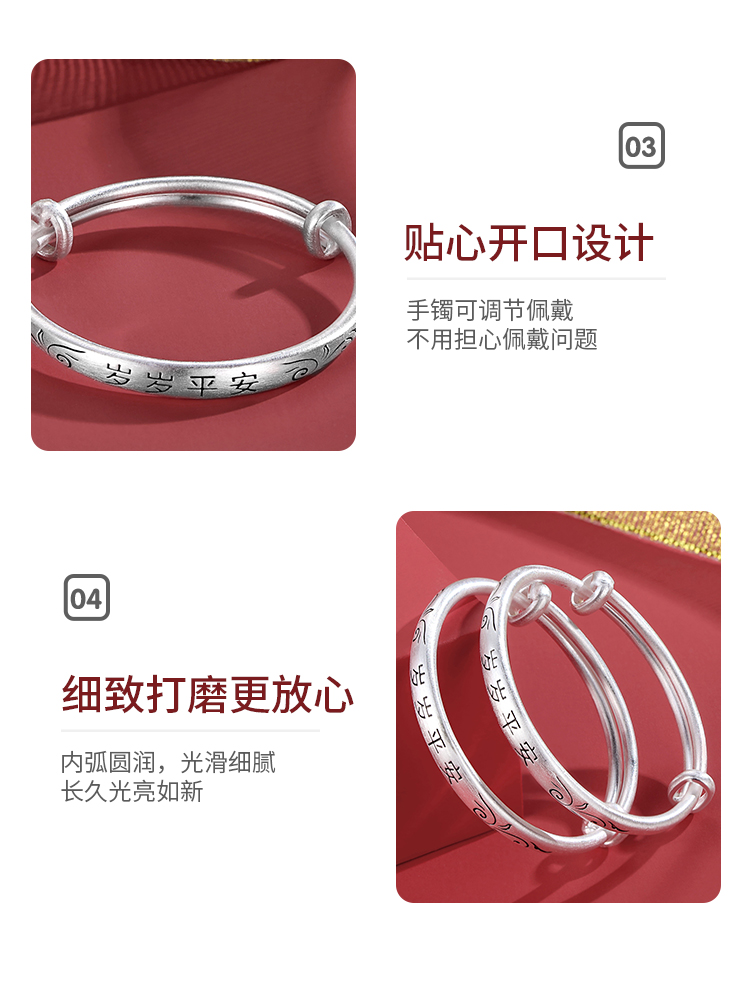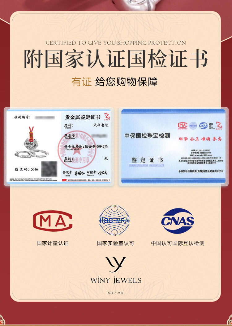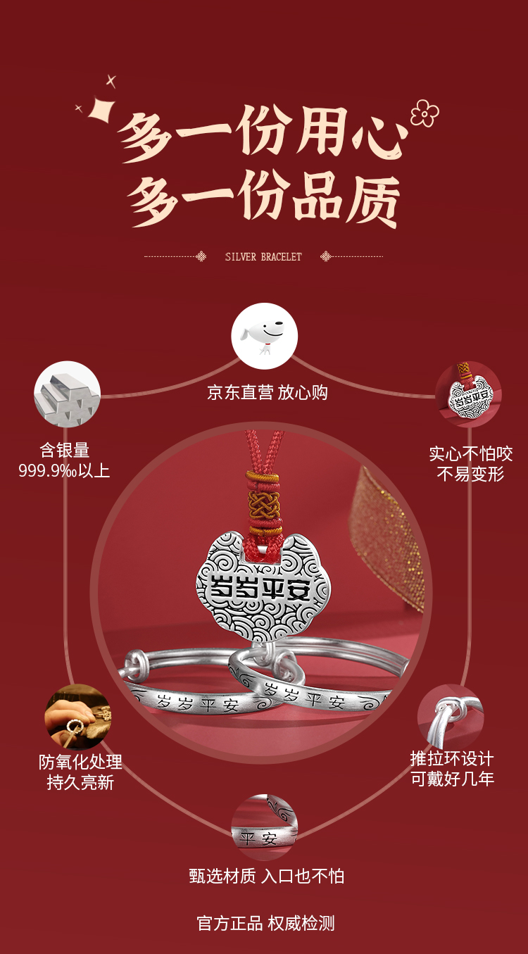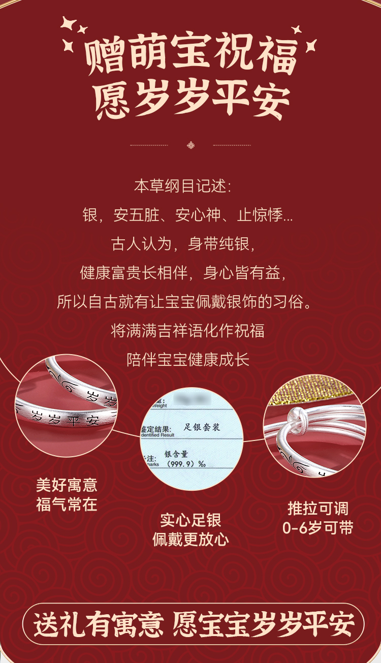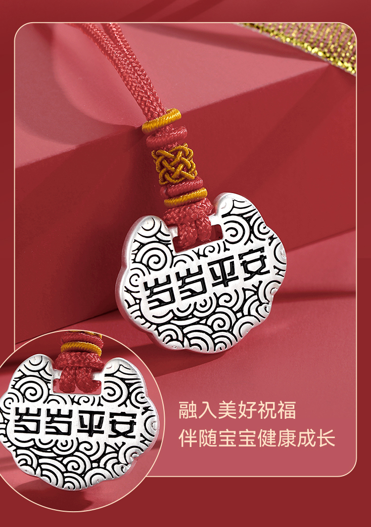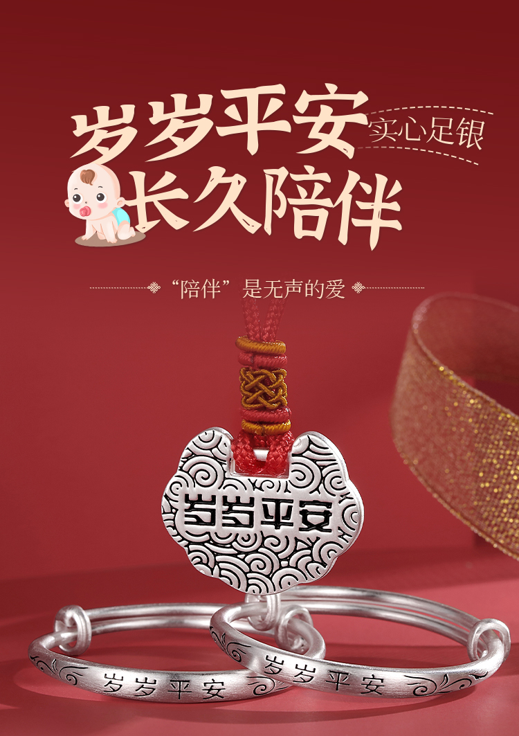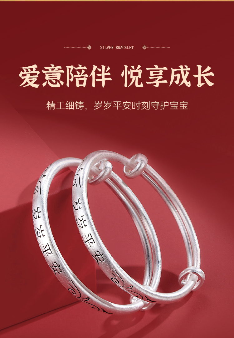 Winy9999足银宝宝套装岁岁平安配证书送礼百天满月生日礼物