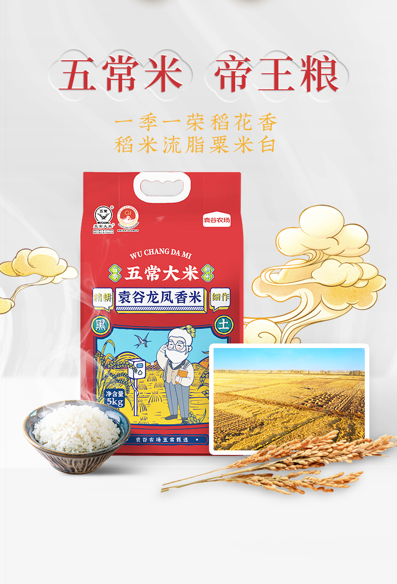 袁谷隆平芯米五常龙凤香米5kg稻花香2号东北大米/粳米10斤2025年新米