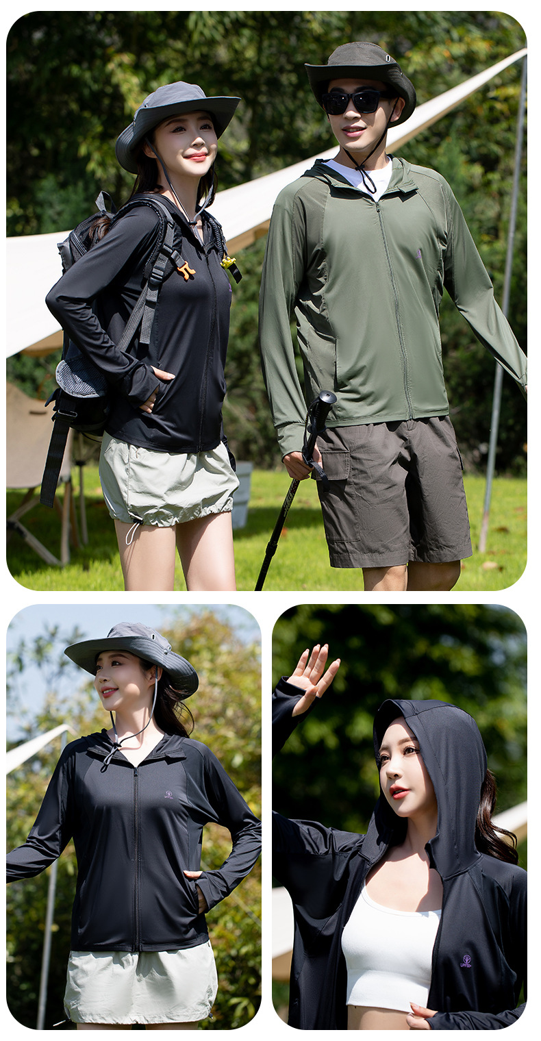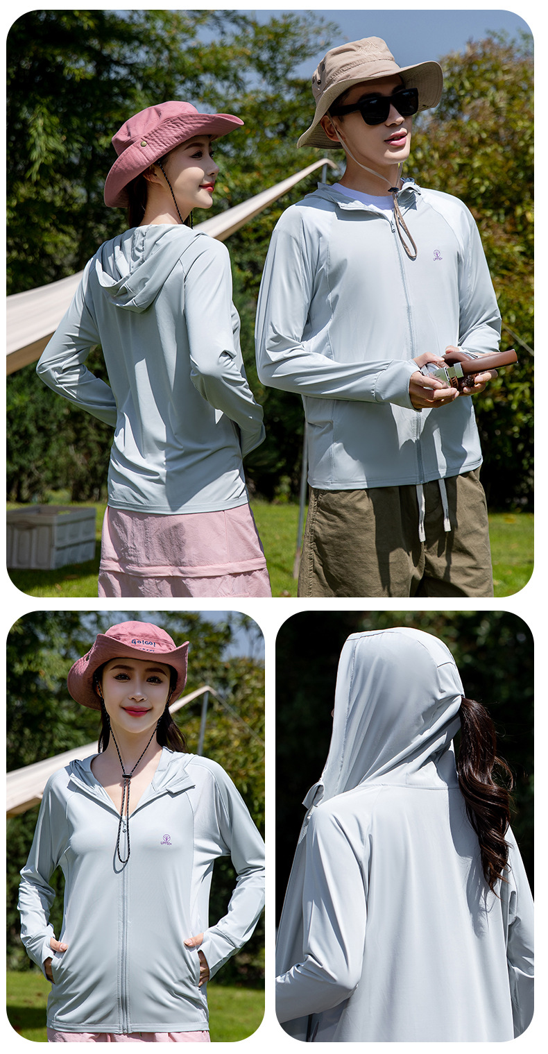 防晒衣 情侣款夏季宽松冰凉丝滑透气连帽男女同款防紫外线防晒服