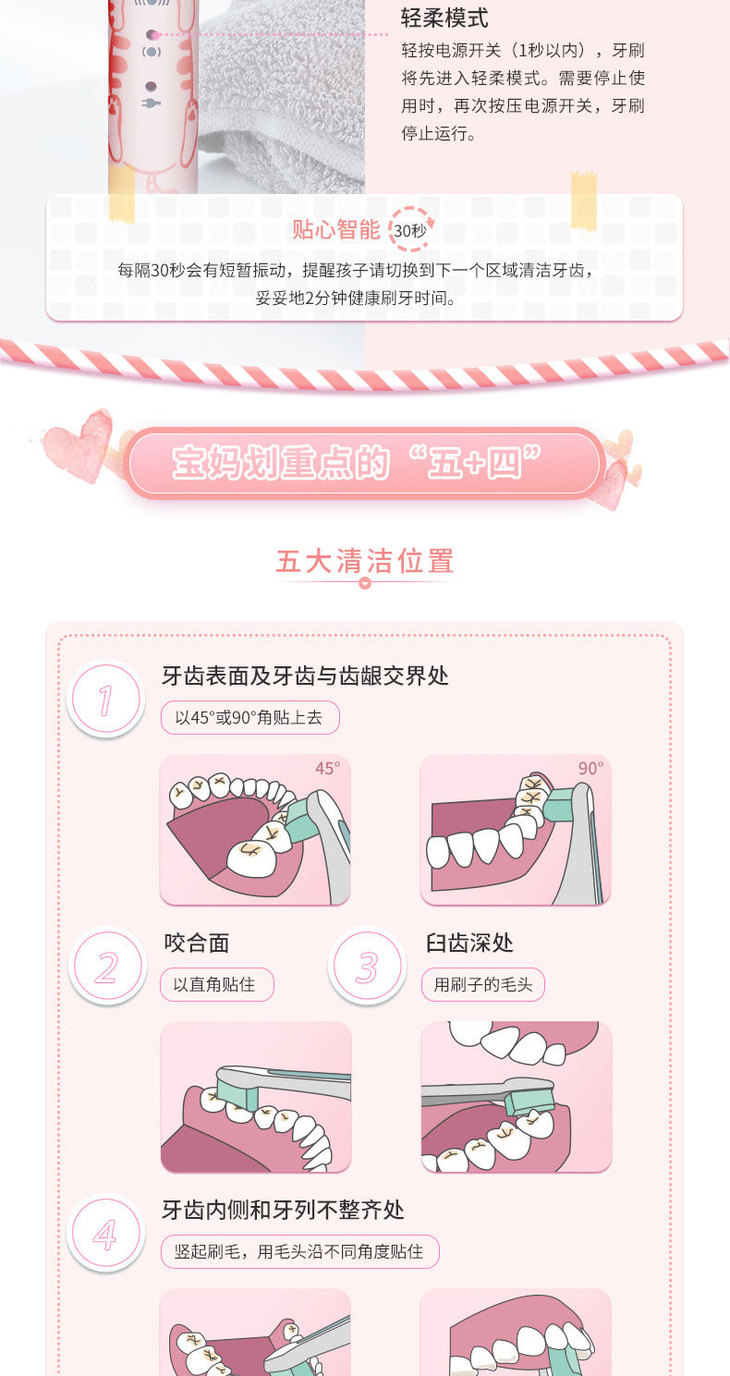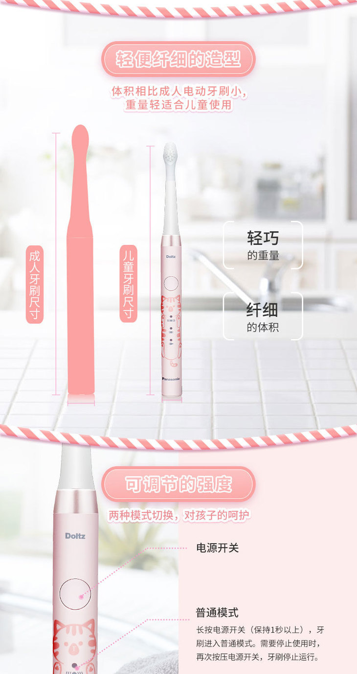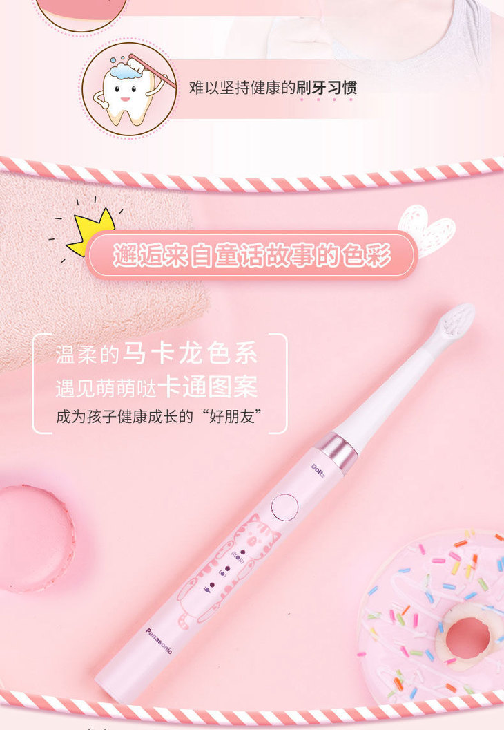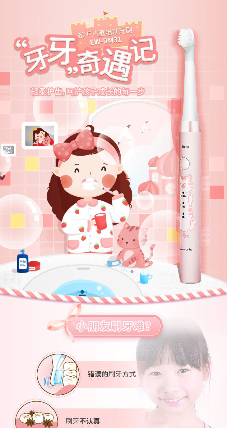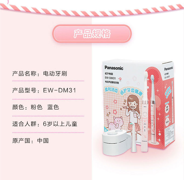 松下儿童电动牙刷细软刷毛声波充电牙刷EW-DM31