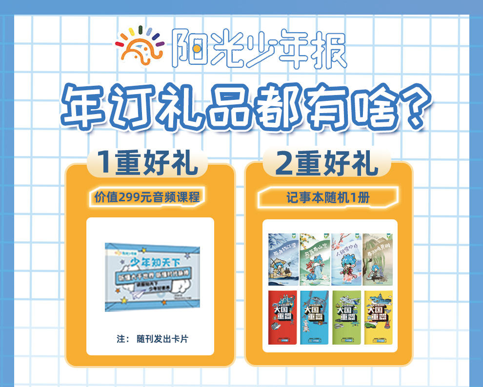 【开学季活动】自2026年3月1日起,阳光少年报/阳光大少年订阅一年即赠:音频卡一张+阳光少年报记事本随机一册。