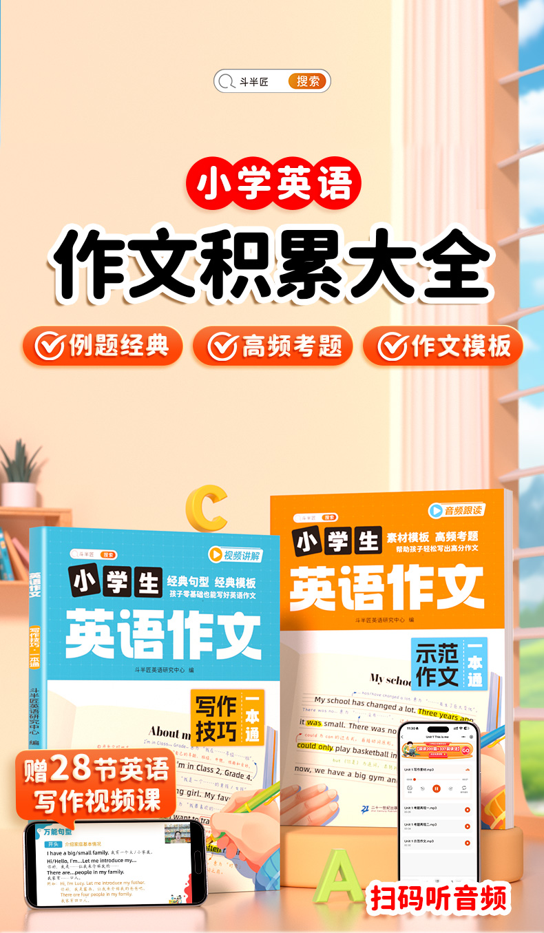 【斗半匠】小学通用英语作文范文与写作技巧思维导图速记