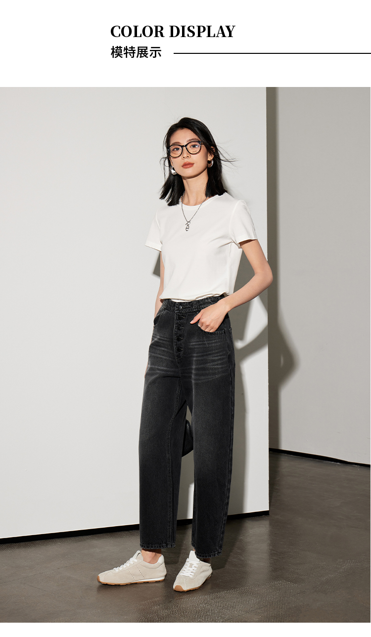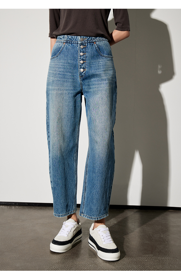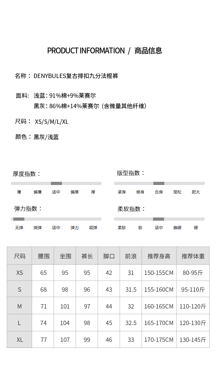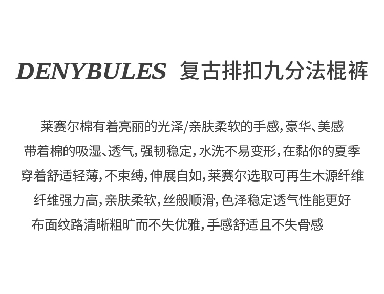 DENYBULES复古排扣九分法棍裤