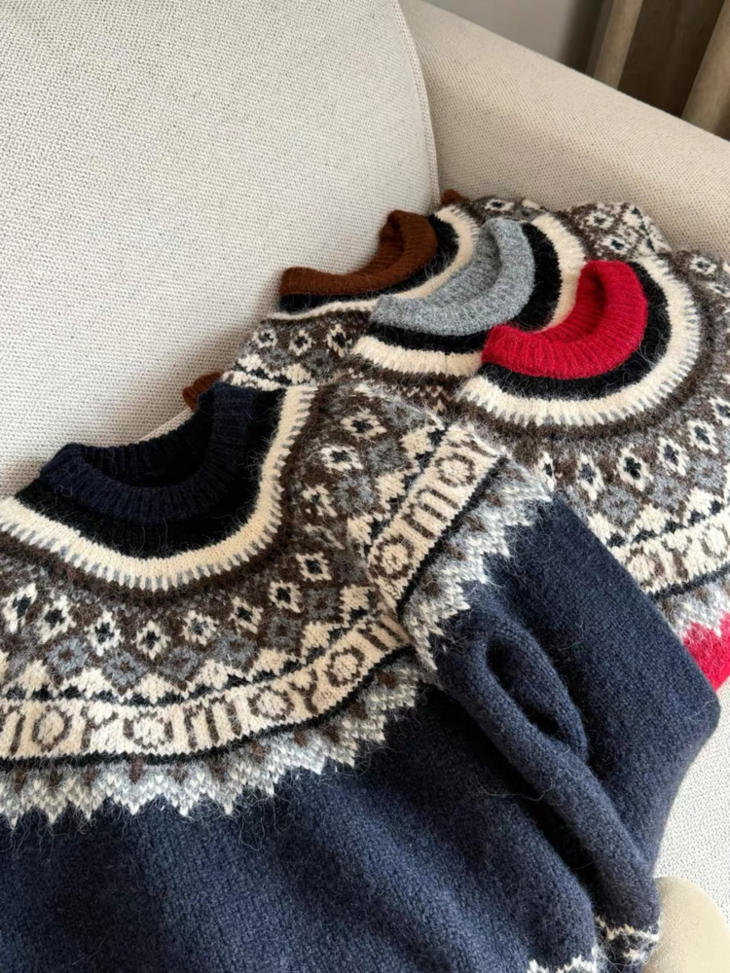 无论是极具辨识度的对称花纹 还是色彩丰富的层次感 费尔岛毛衣以其浓厚的复古韵味 完美契合了当下潮流对于个性化与怀旧情感的追求
