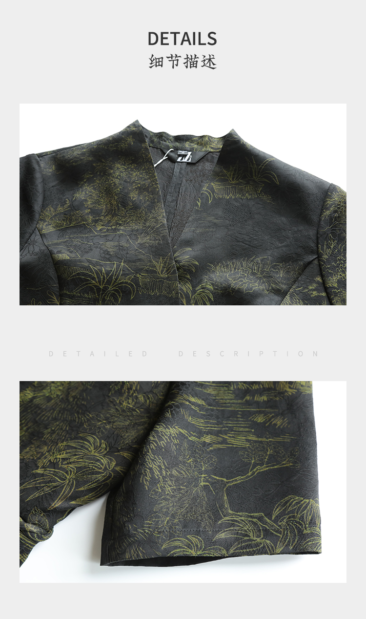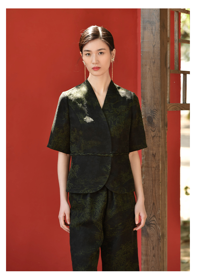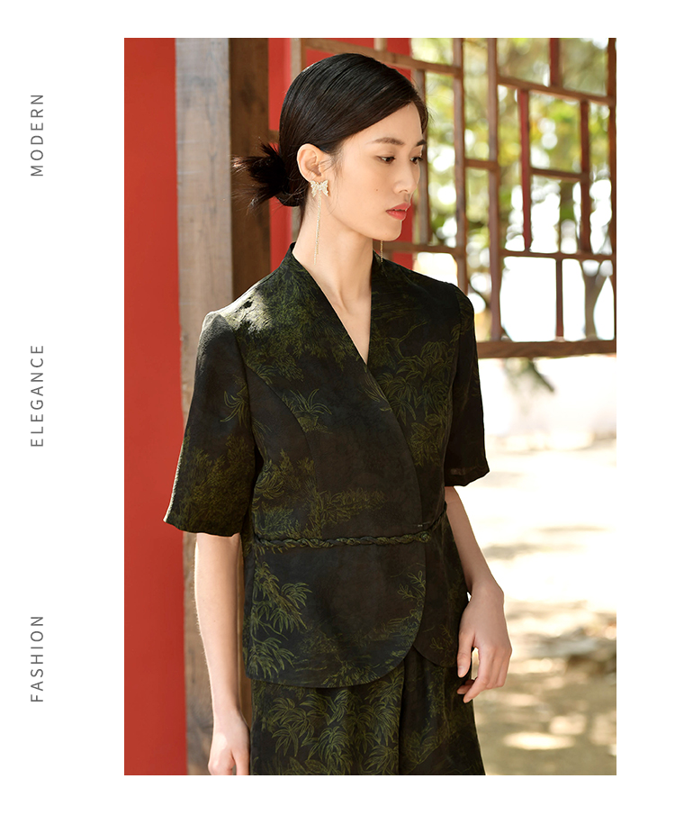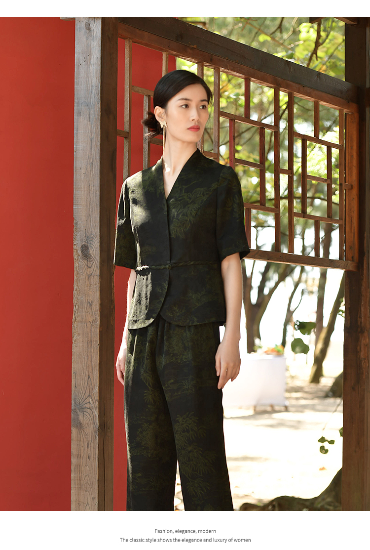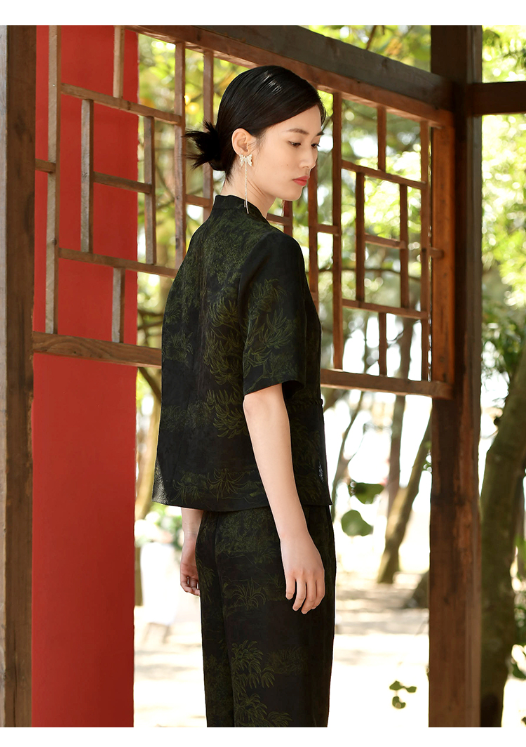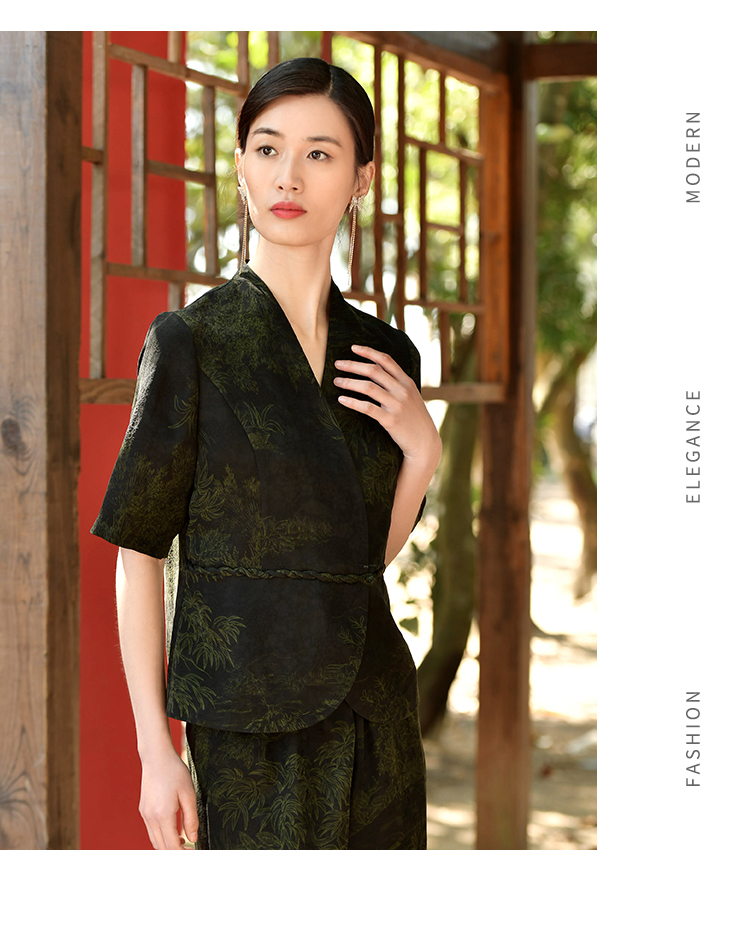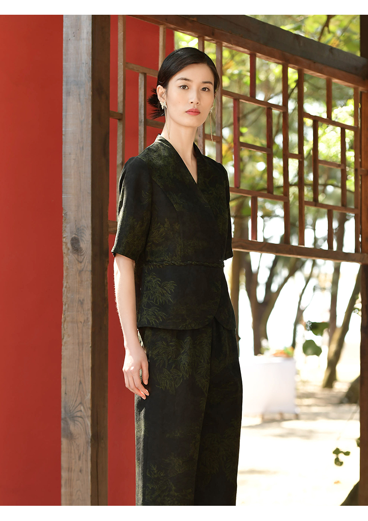 佐尔美夏季新款 重磅印花香云纱新中式优雅通勤套装衬衣女E32CS63