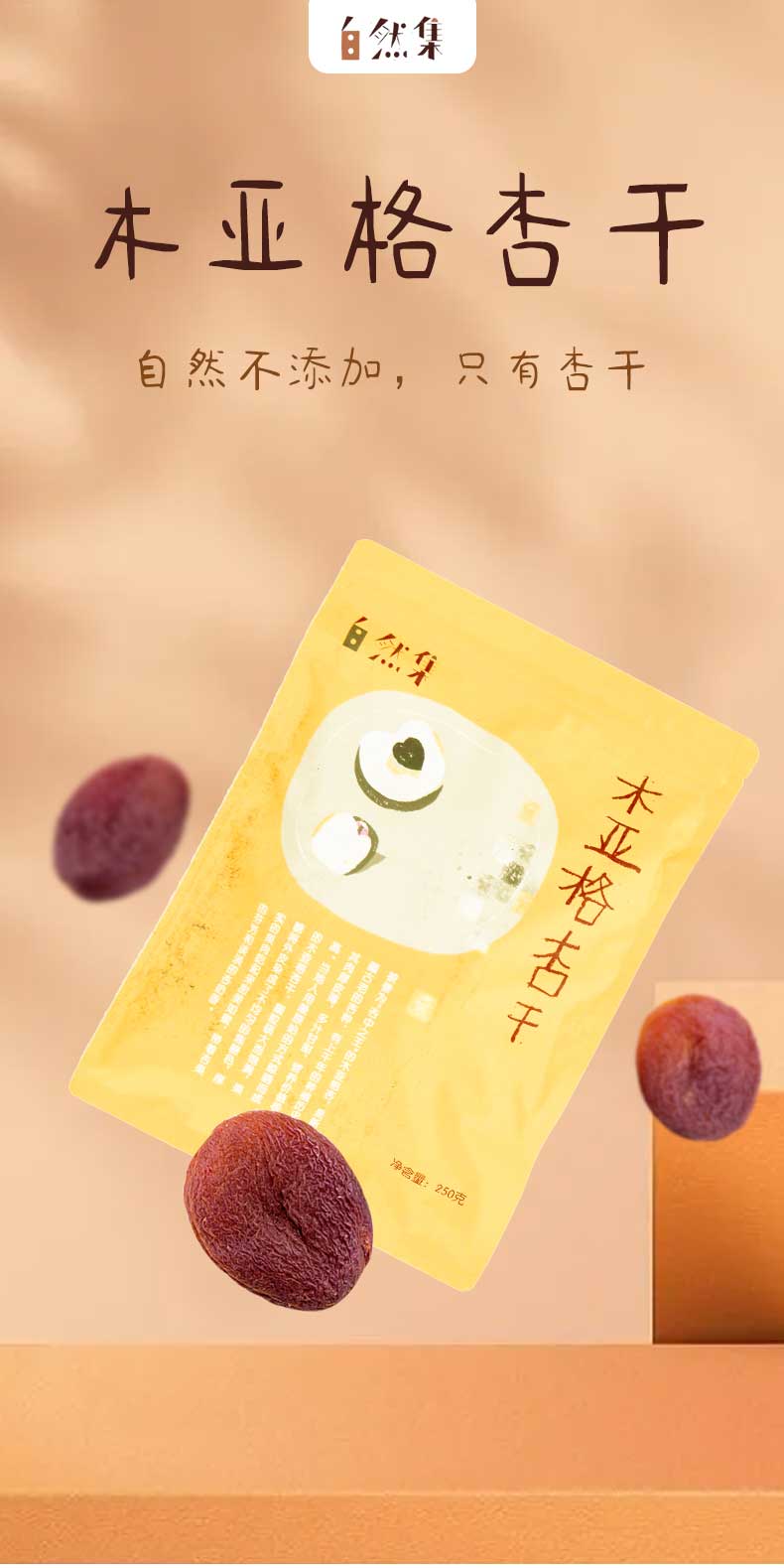 自然集特级木亚格杏干 新疆特产 无核杏干 无添加零食果干 250g