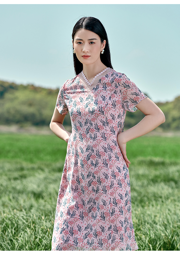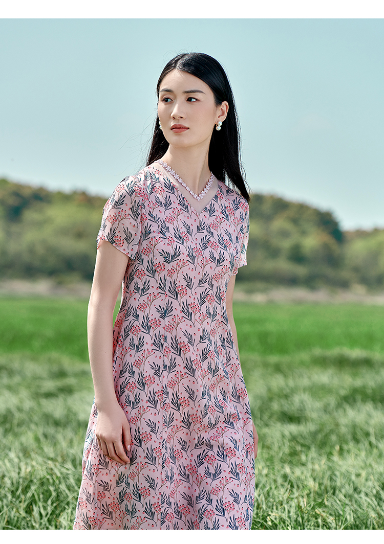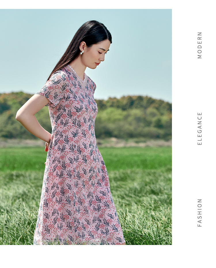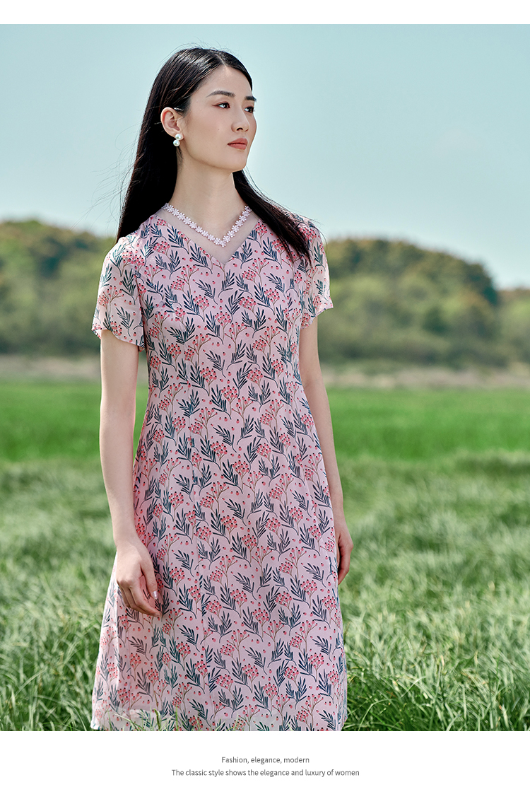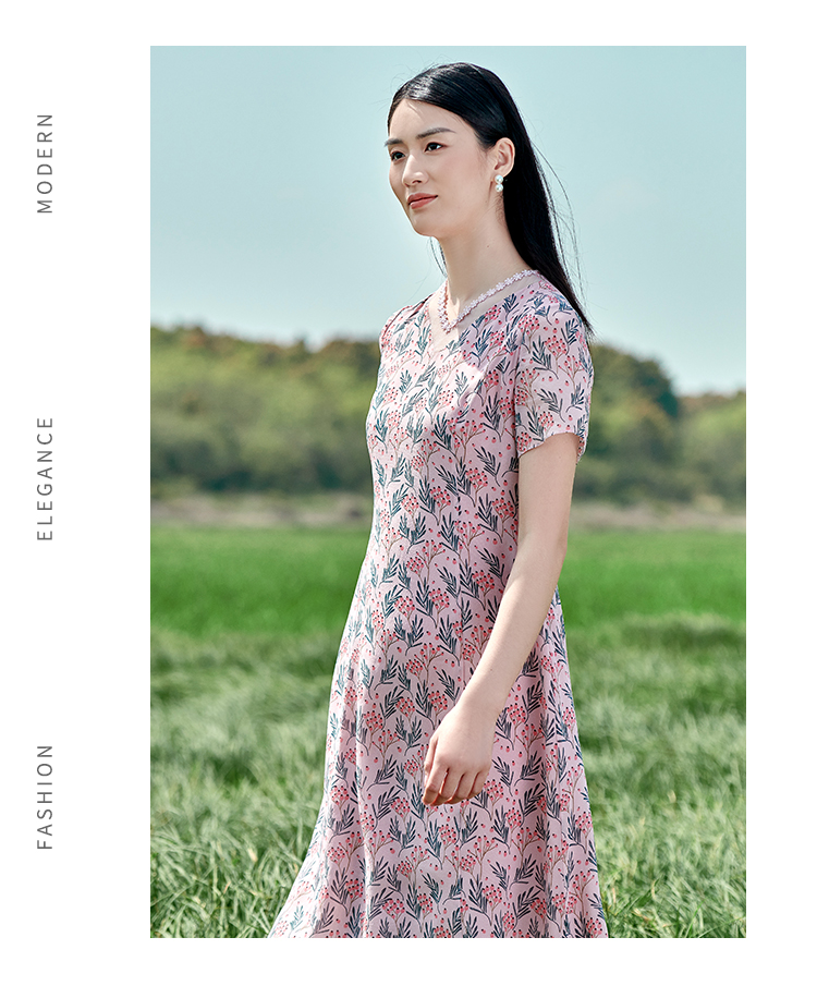 佐尔美夏季新款 桑蚕丝真丝乔其甜美连衣裙女E22LS43