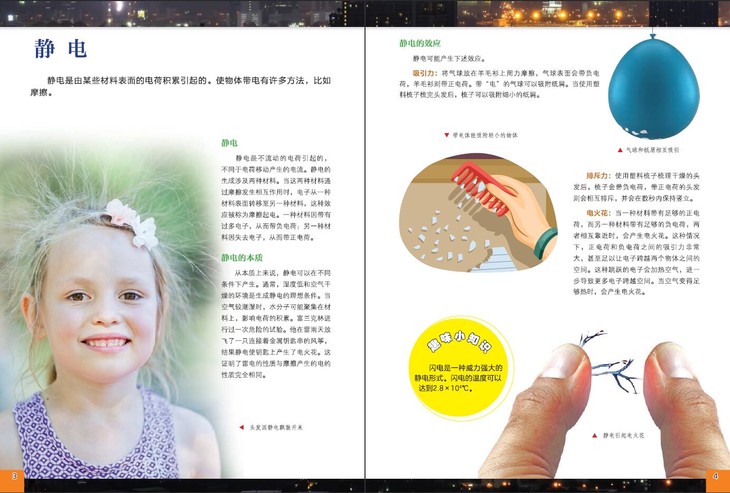 “你好,科学!”的一个主要特色是对于科学内容的深度呈现。本套书通过简单的文字描述,向孩子介绍了*的科学内容,但不要求孩子太过深入地理解。该书配有大量启发性的图片、图表,为学生提供了视觉学习的方式,有助于他们对科学内容建立印象。因而,本套书可以作为初中学生深入学习物理、化学、生物、地理等科学内容的有益补充。