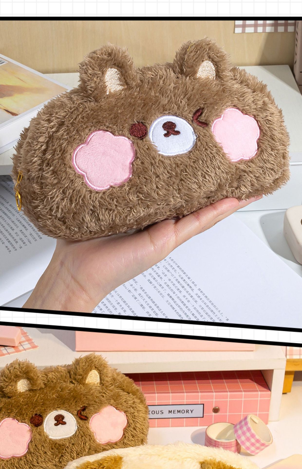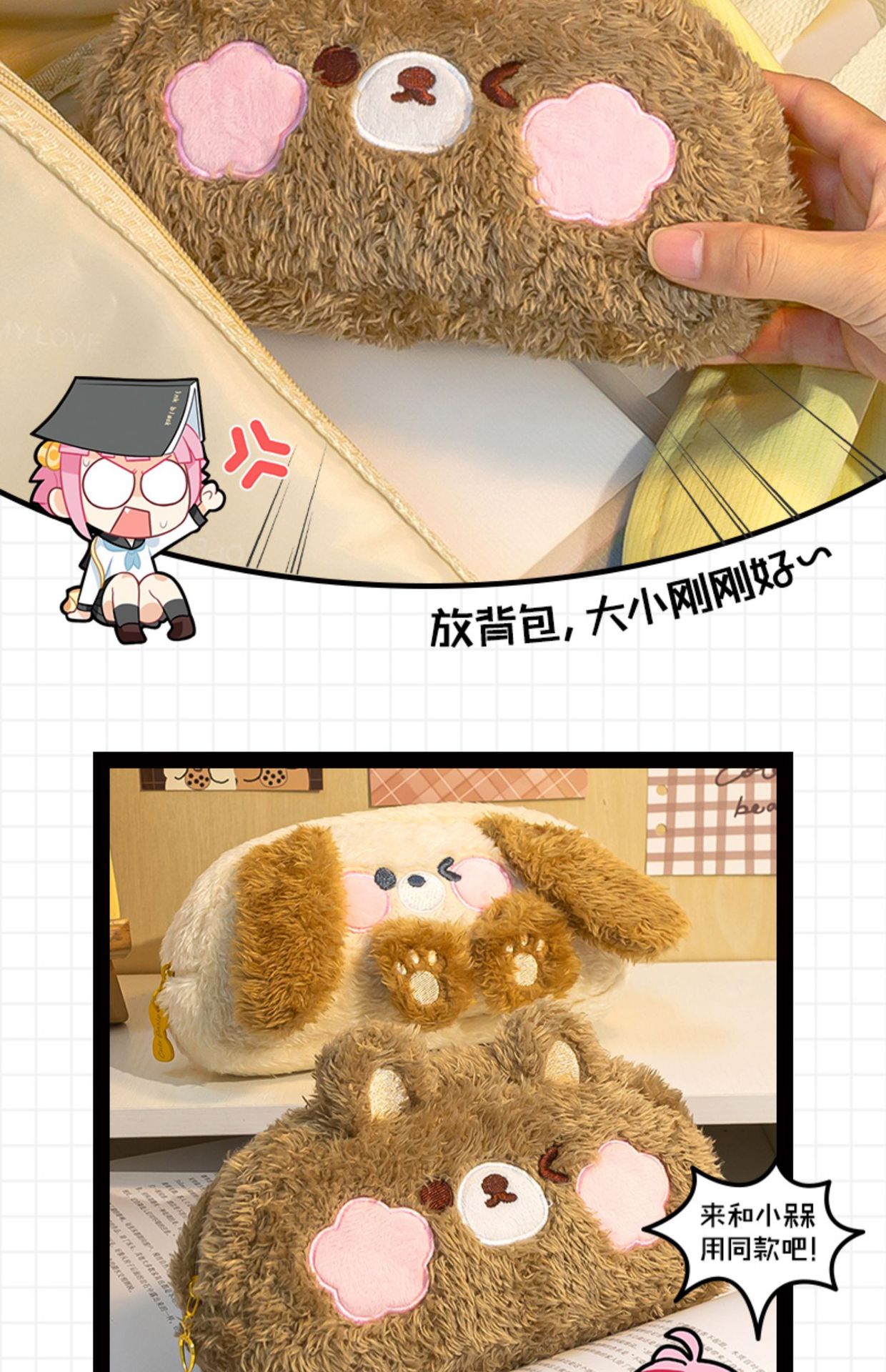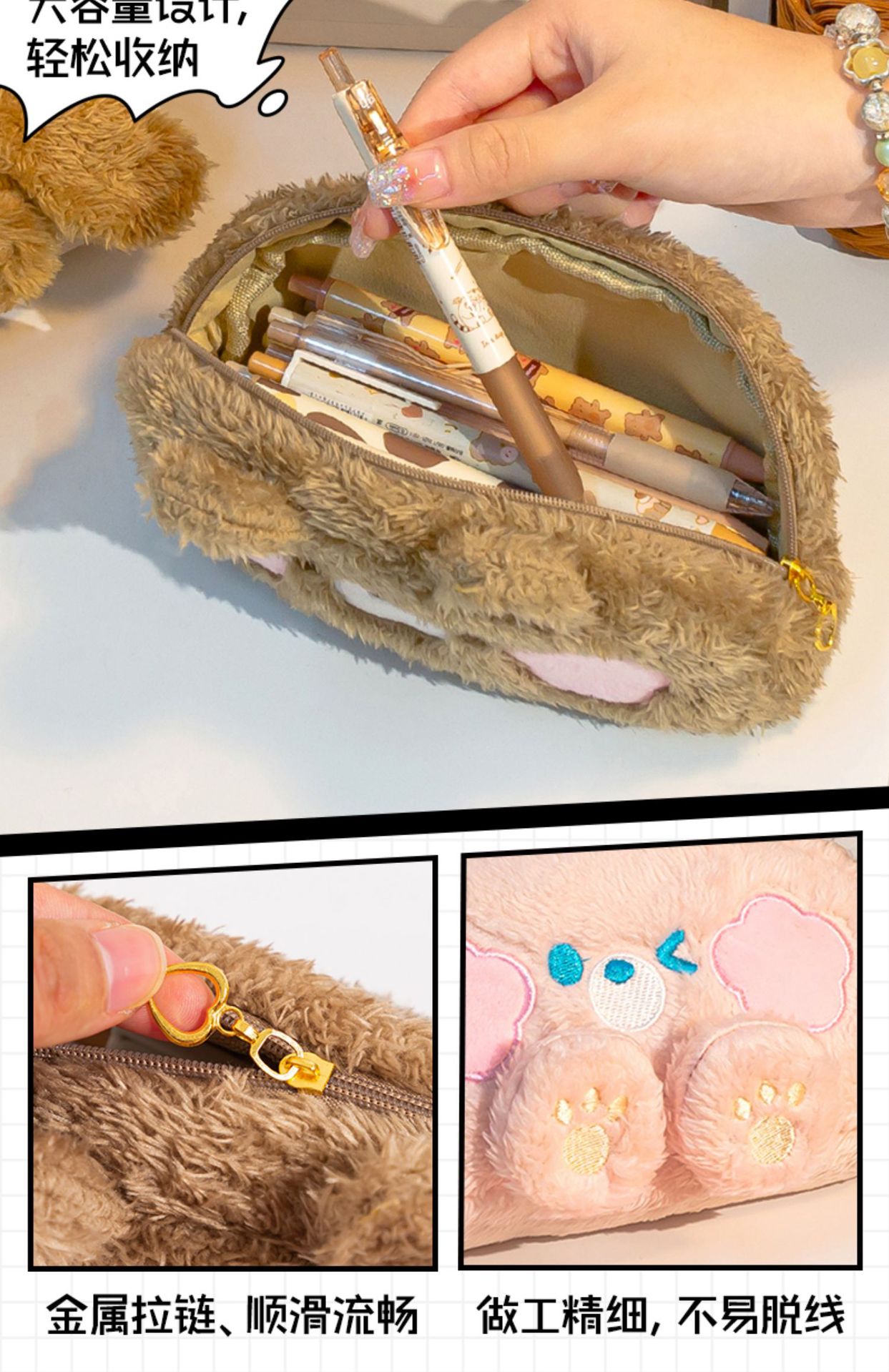 【毛绒小熊笔袋!超好rua】毛绒笔袋超大容量可爱高颜值女孩款文具盒初中女生小学。ry