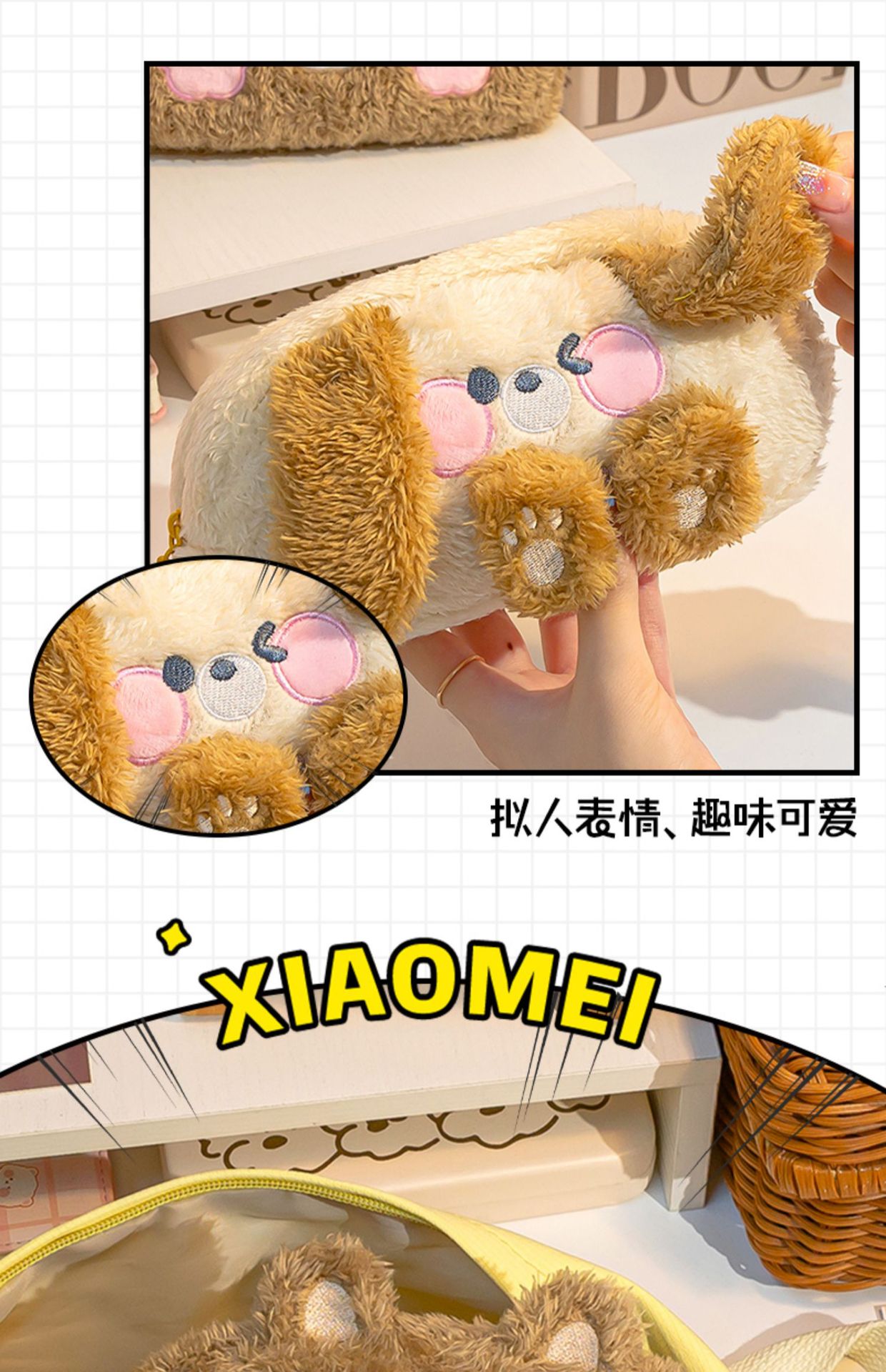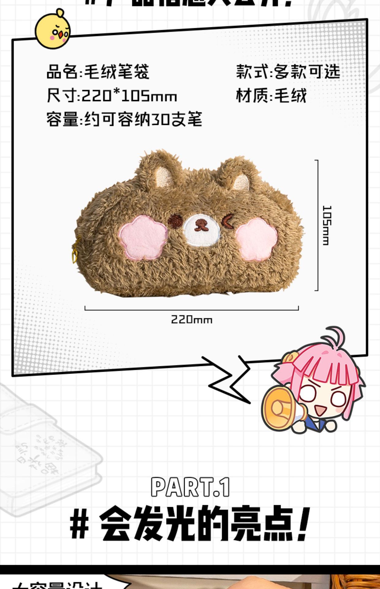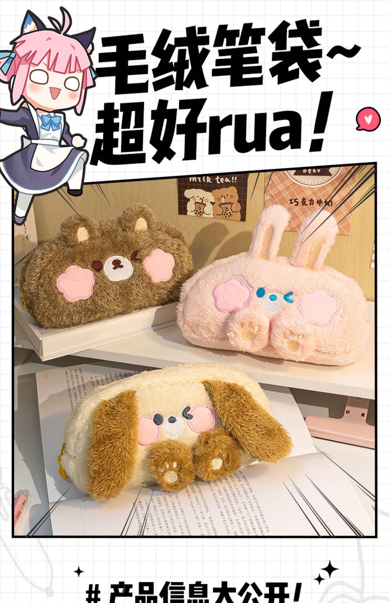 【毛绒小熊笔袋!超好rua】毛绒笔袋超大容量可爱高颜值女孩款文具盒初中女生小学。ry