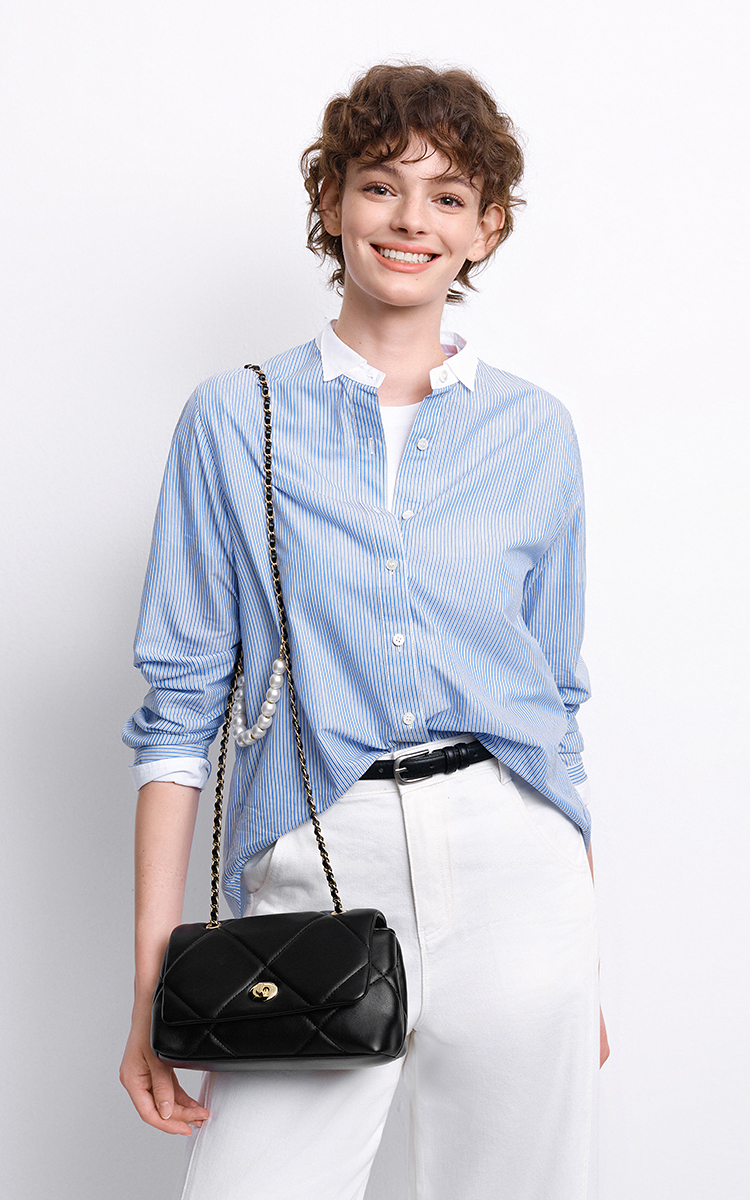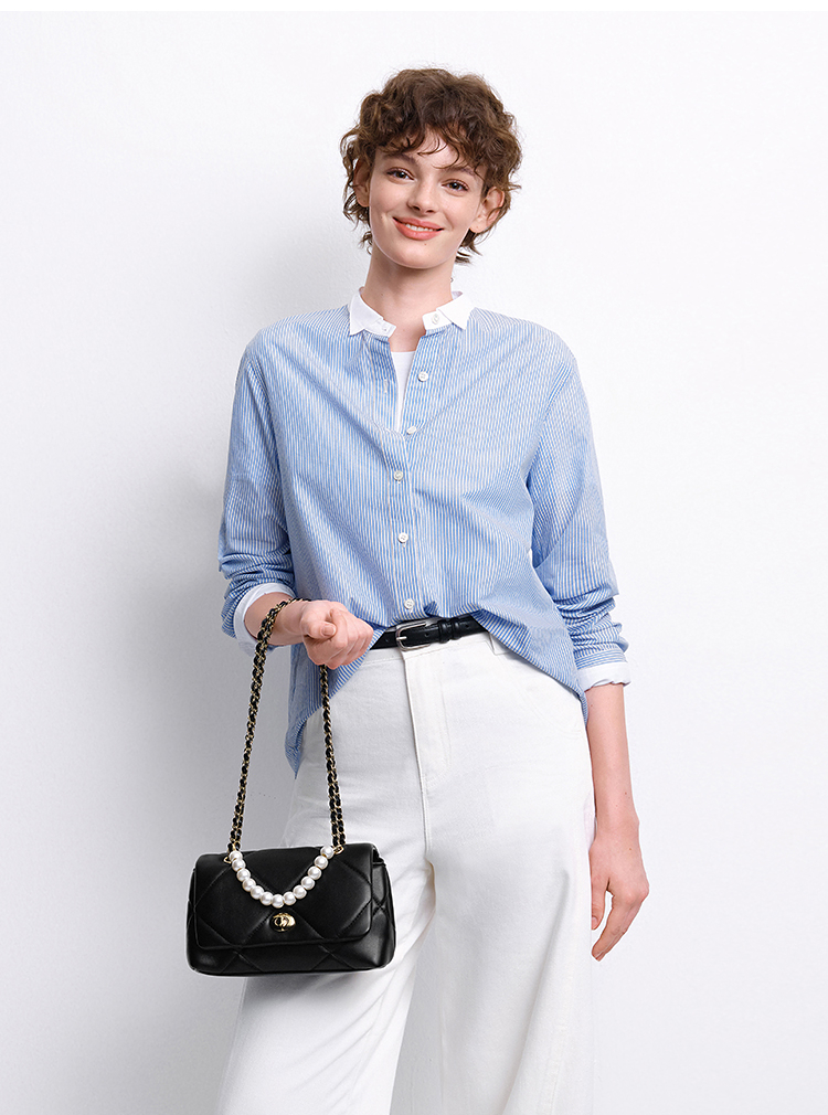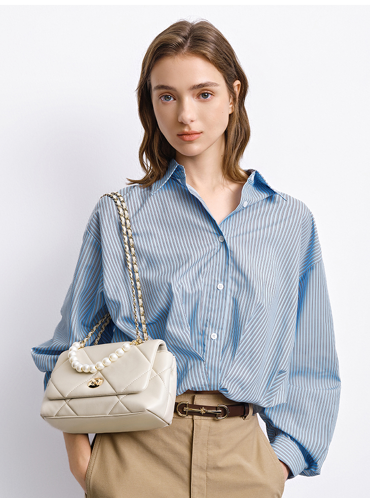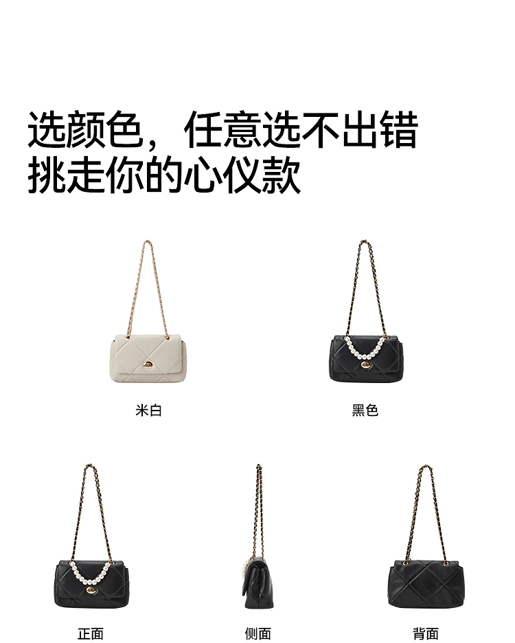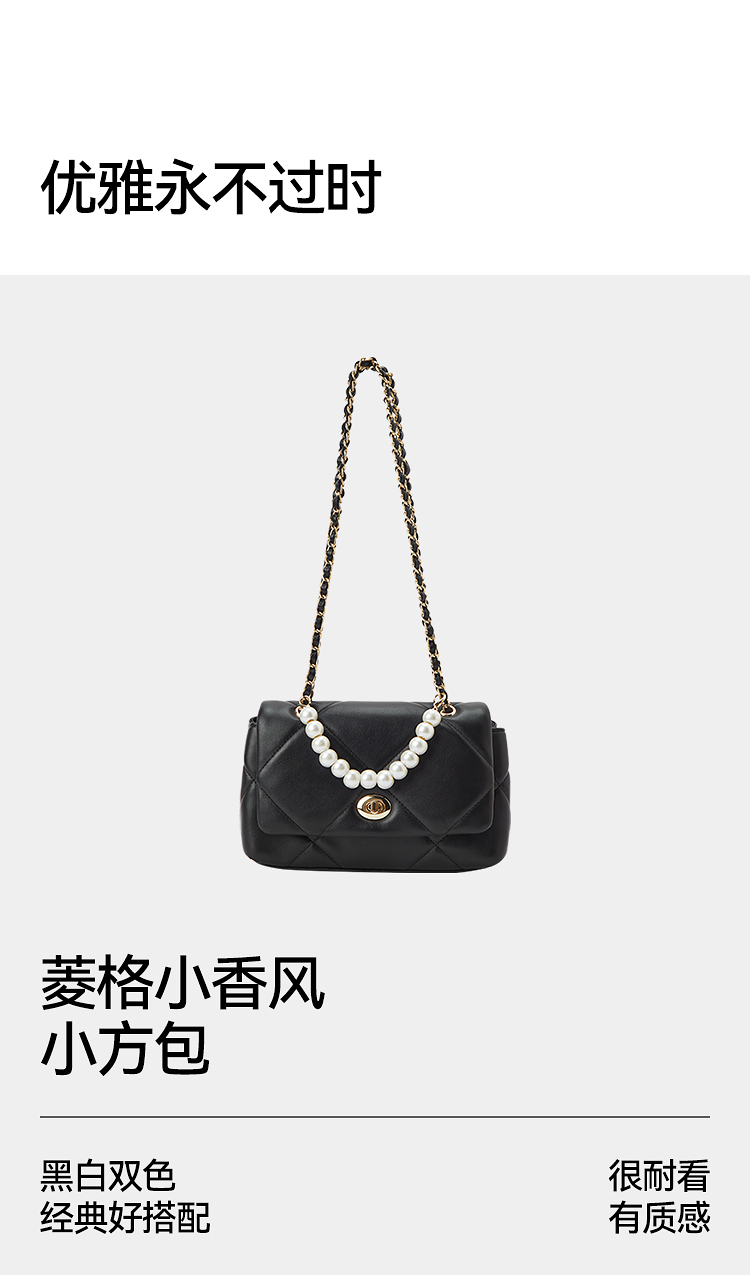 森马包包女小方包优雅小香风斜挎包菱格珍珠链条包2025新款单肩包