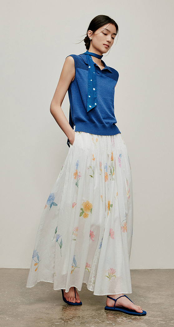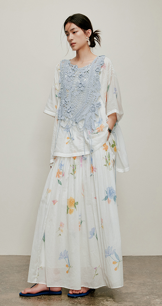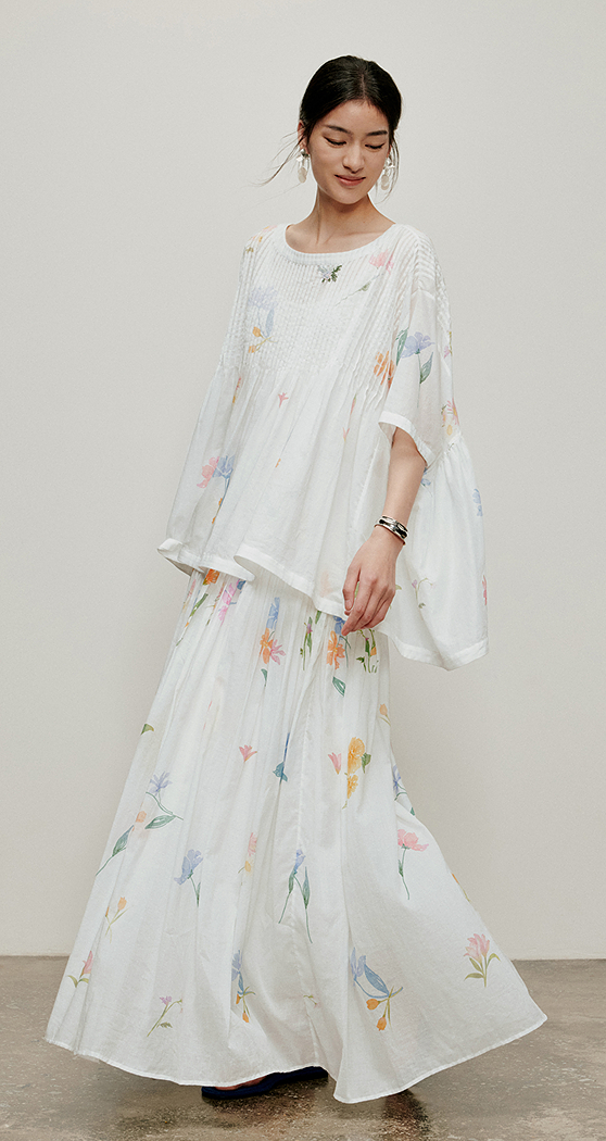 【林栖设计小店】手工绣花|婴儿棉压褶百搭宽松显瘦2026夏新款印花半身裙1962142