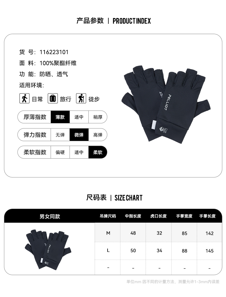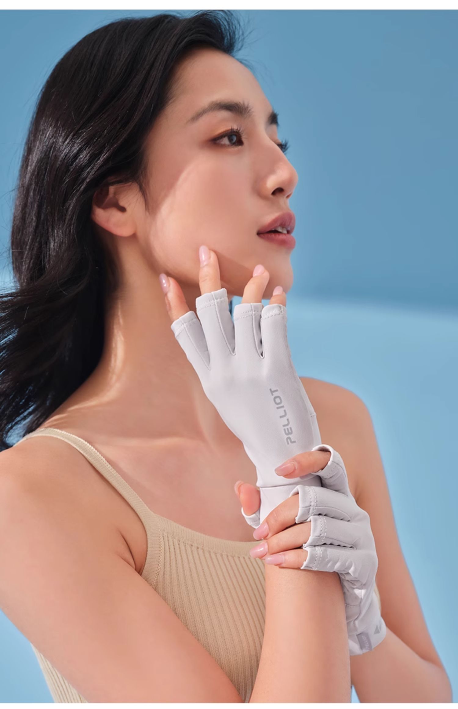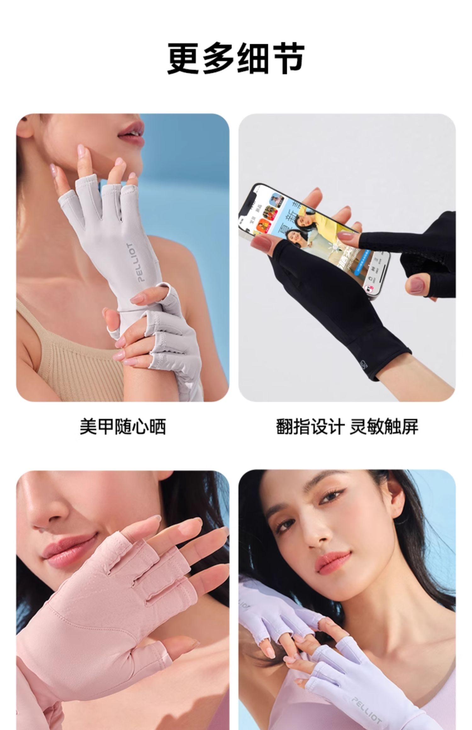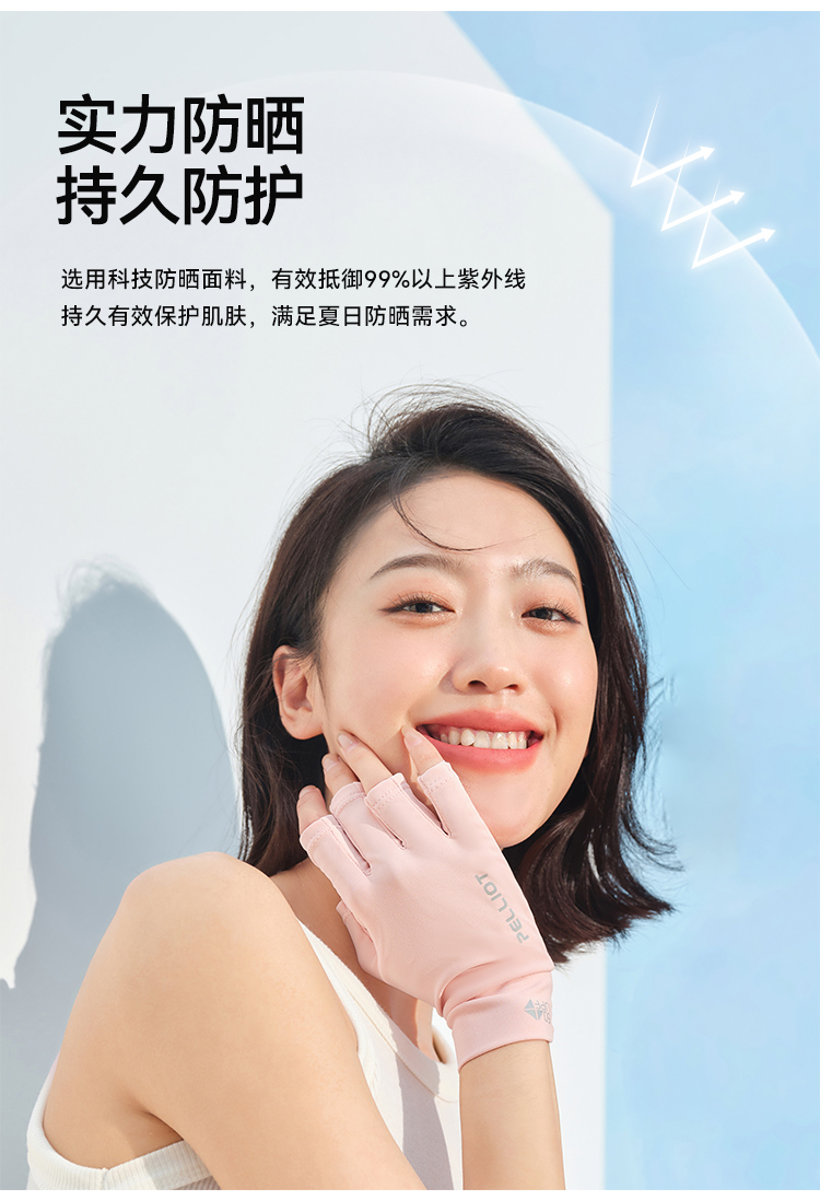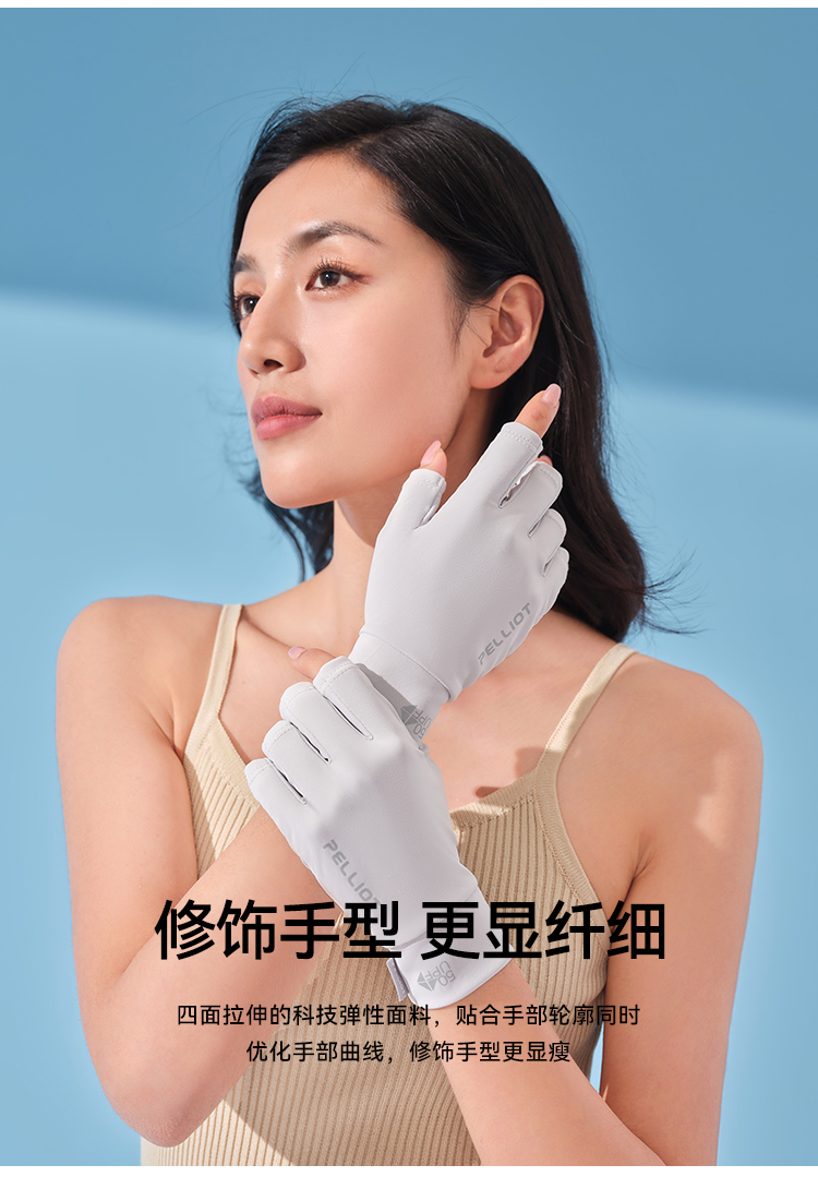 伯希和防晒手套女士美甲手套漏指夏防紫外线防滑薄款骑行遮阳手套