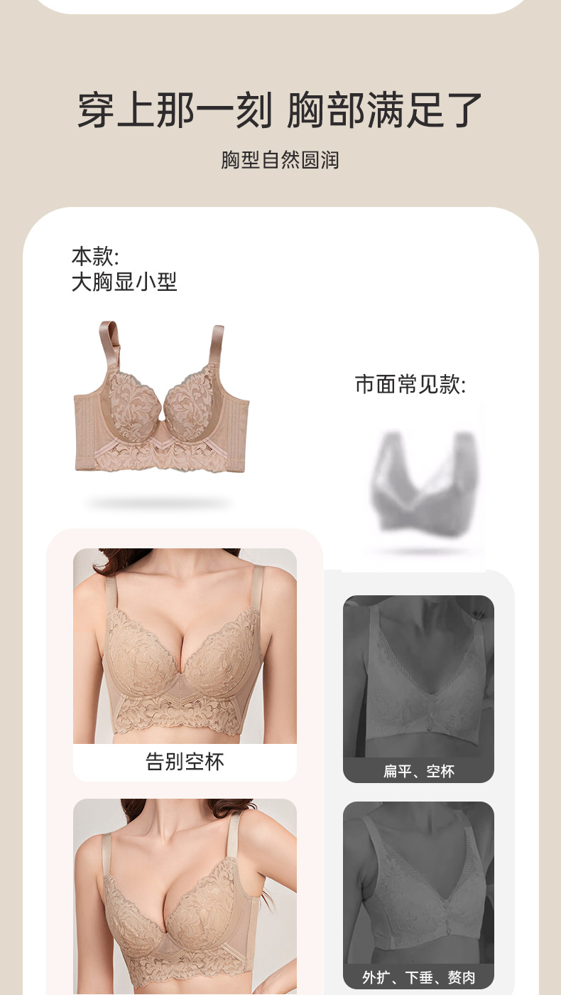 桑蚕竹炭调整型文胸 四分之三杯 软钢圈专为小胸设计 蚕丝竹炭弹力布和蕾丝花边交叉设计