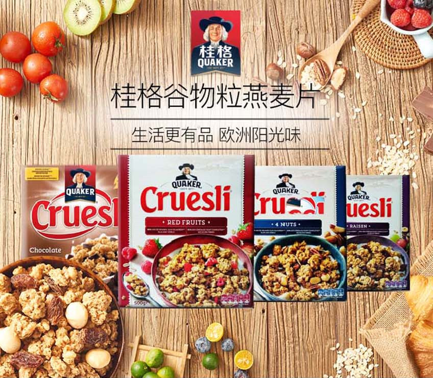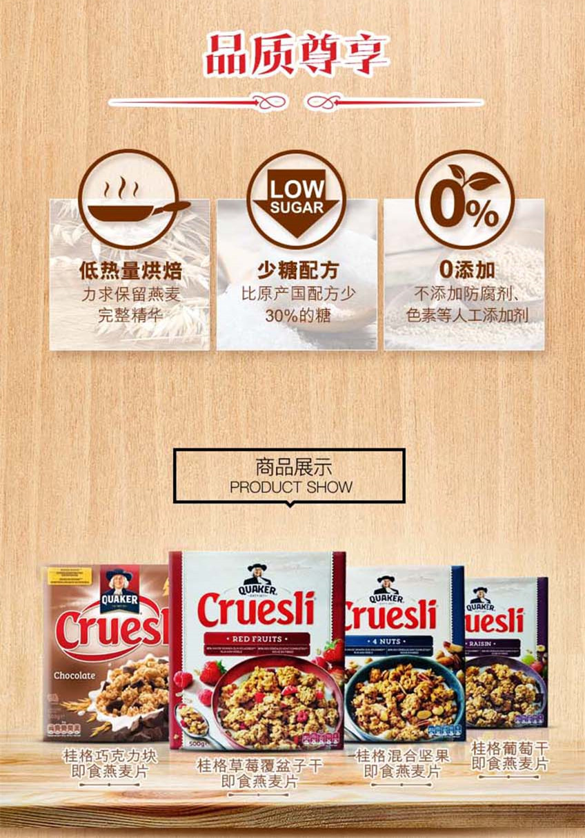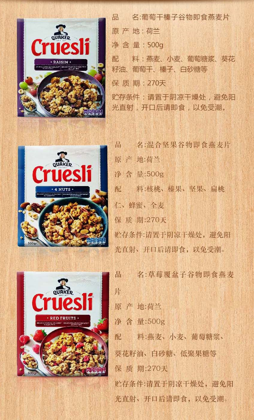 荷兰进口 QUAKER 桂格水果干谷物粒即食燕麦片500g*2盒