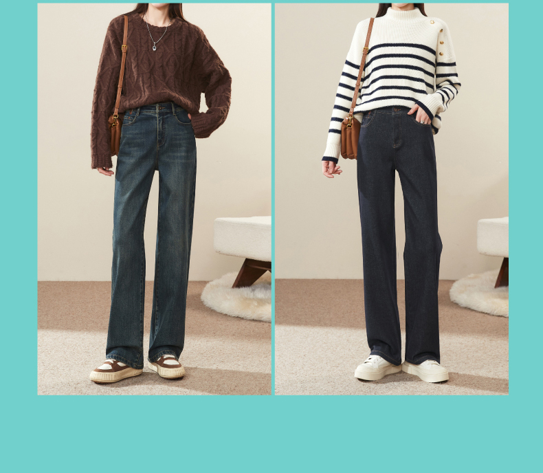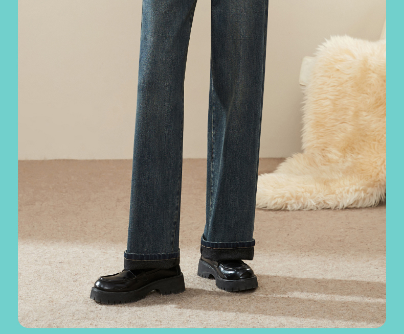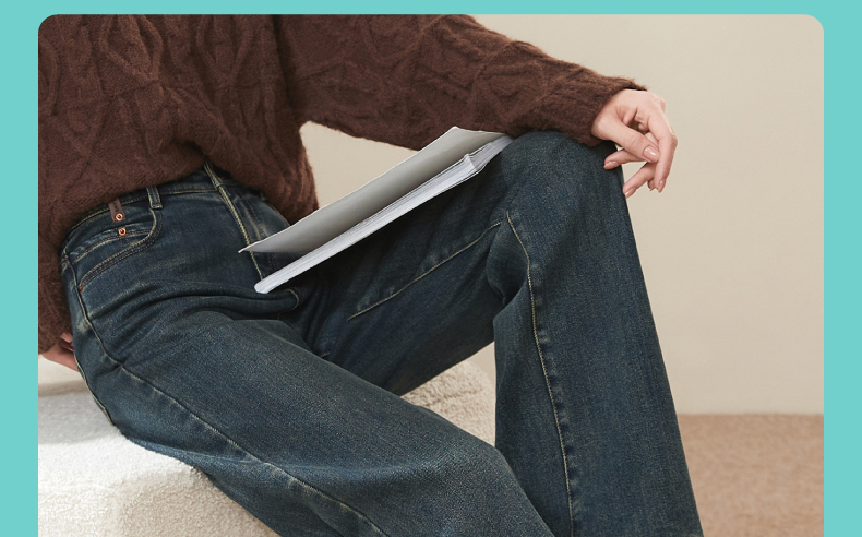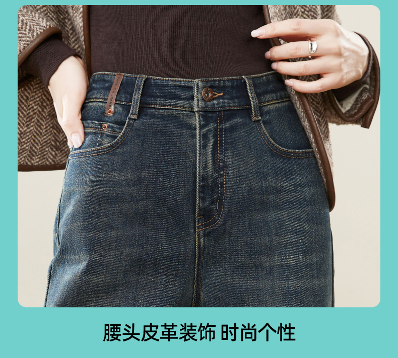 【Q暖绒-直筒牛仔】逸阳冬新品加绒保暖宽松显瘦窄版阔腿牛仔裤1417R
