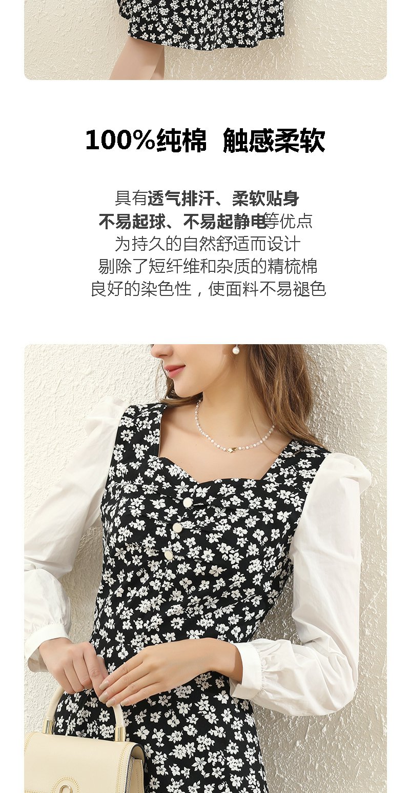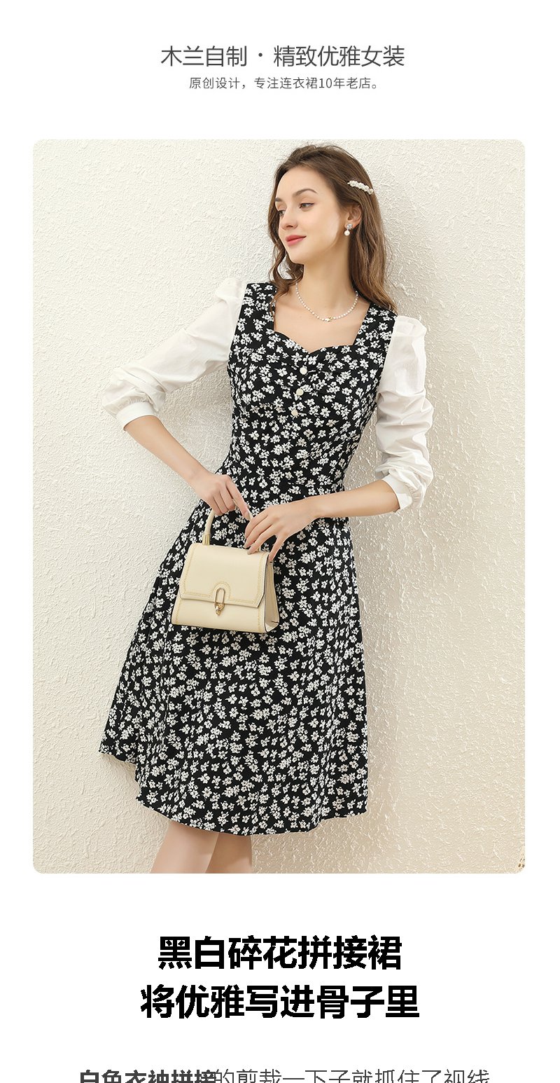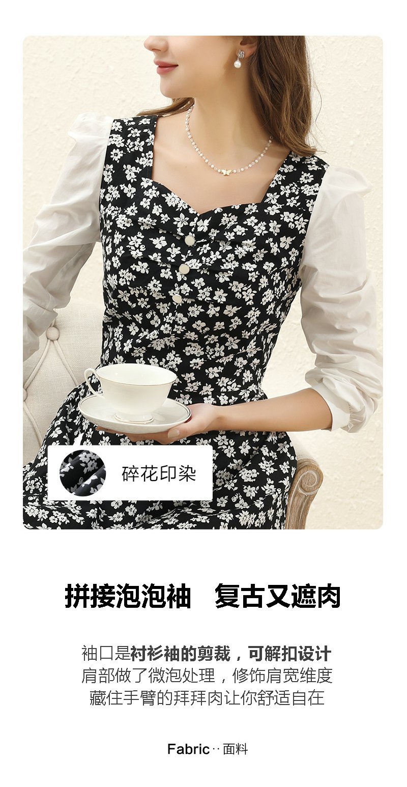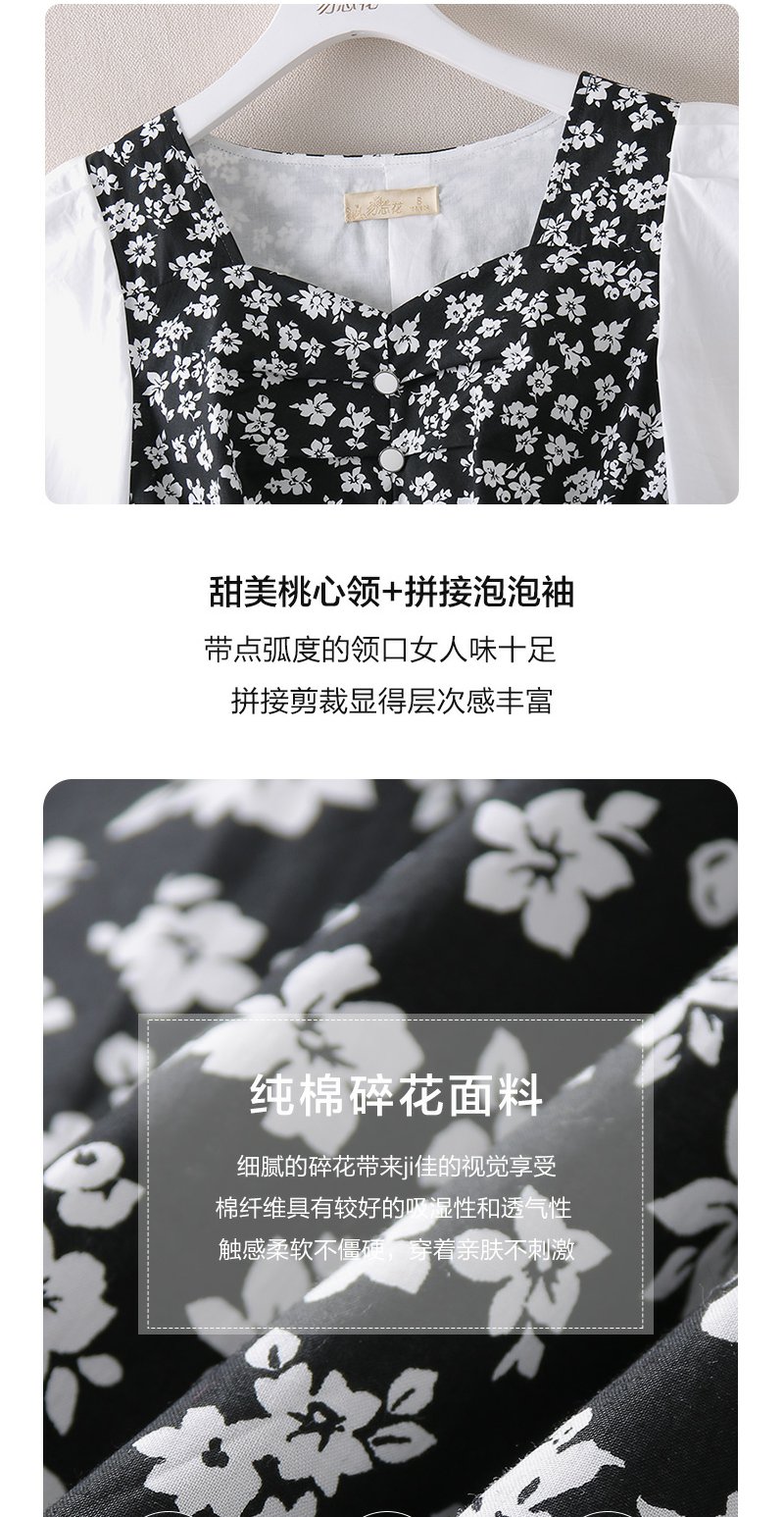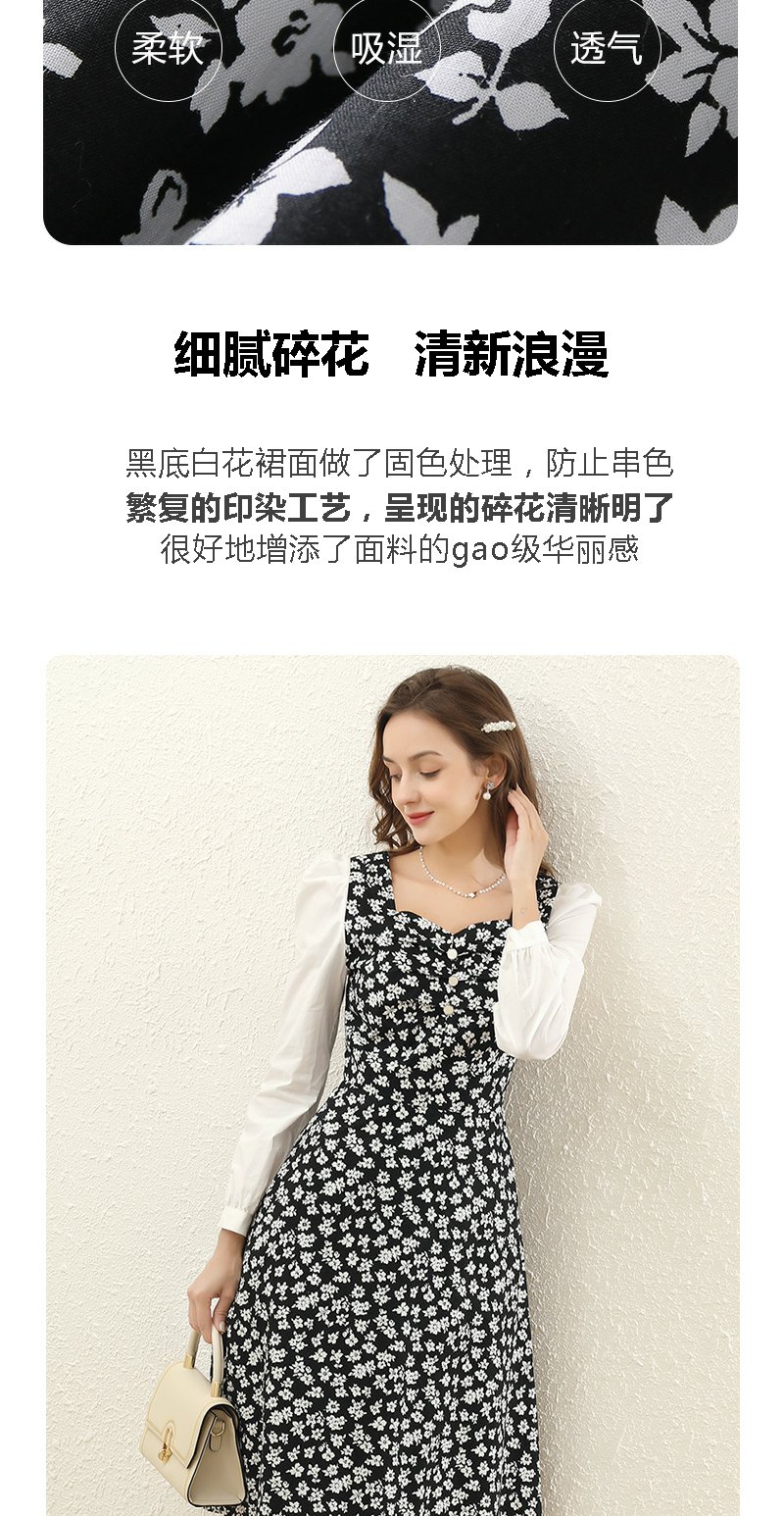 勿忘花黑色纯棉碎花气质连衣裙女2024春季新款今年流行的漂亮裙子