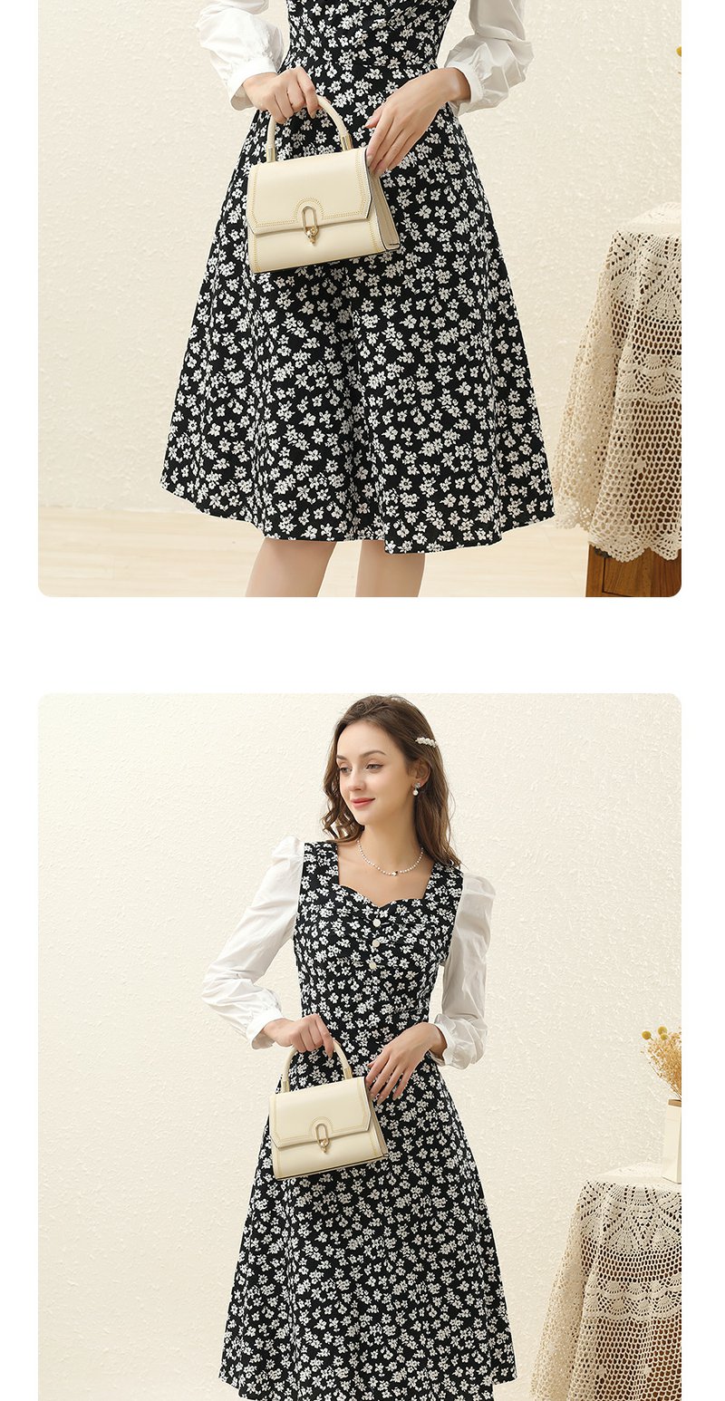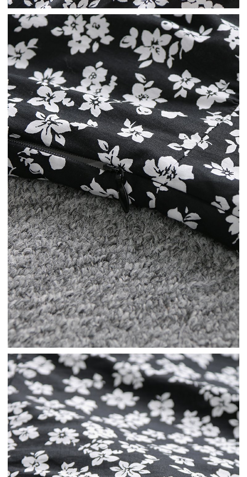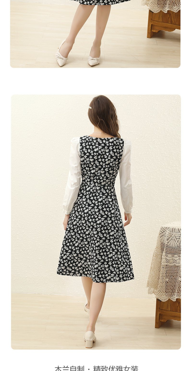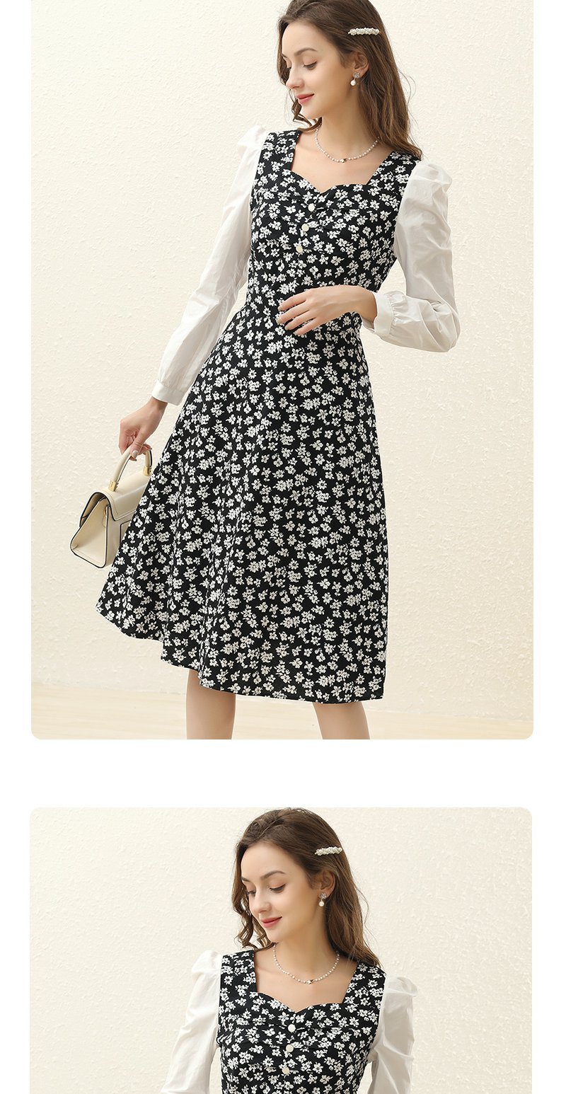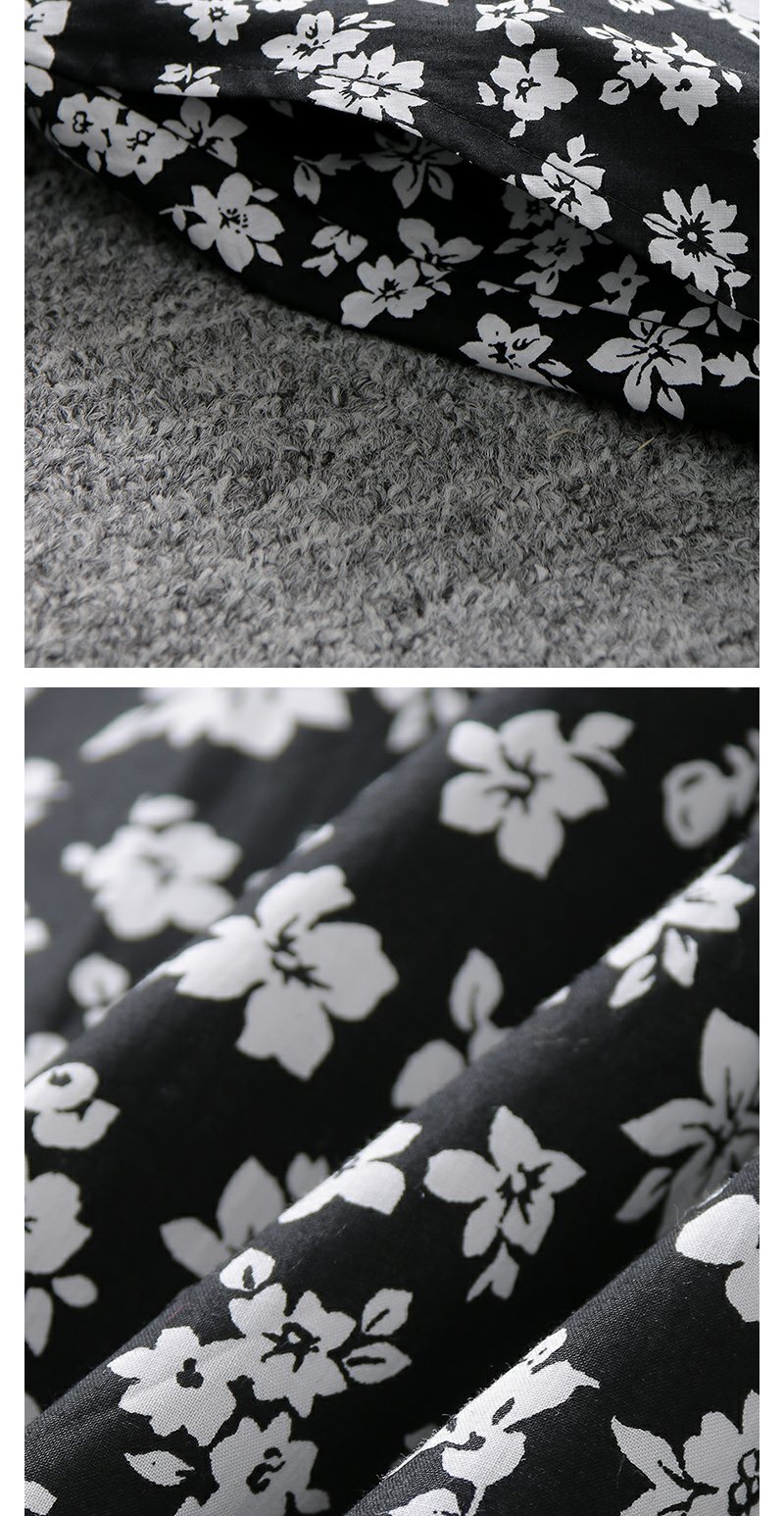 勿忘花黑色纯棉碎花气质连衣裙女2024春季新款今年流行的漂亮裙子