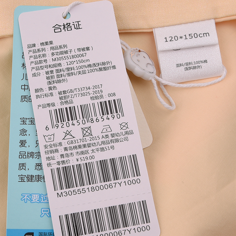 棉果果凉感夹棉被子礼盒淡黄色多功能被子(120*150cm带被套)M305551800067