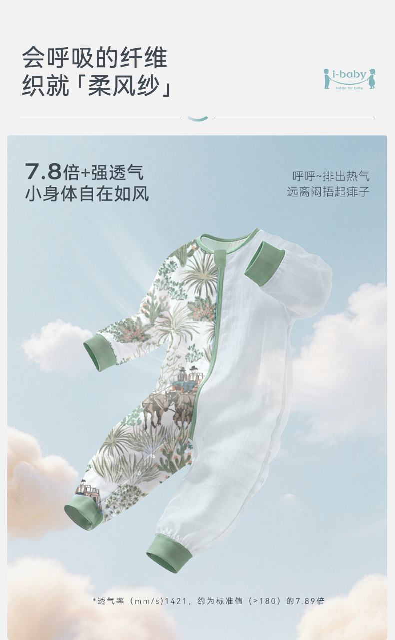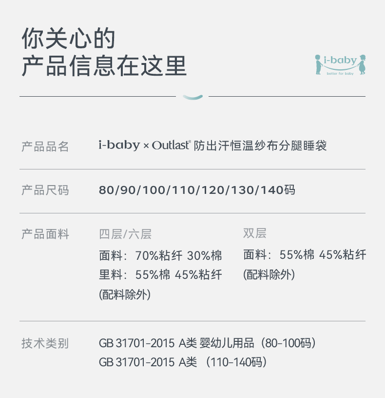 【2026春夏新品】ibaby×outlast太空科技恒温防出汗抑菌六层纱布分腿睡袋【建议室温20-24℃】