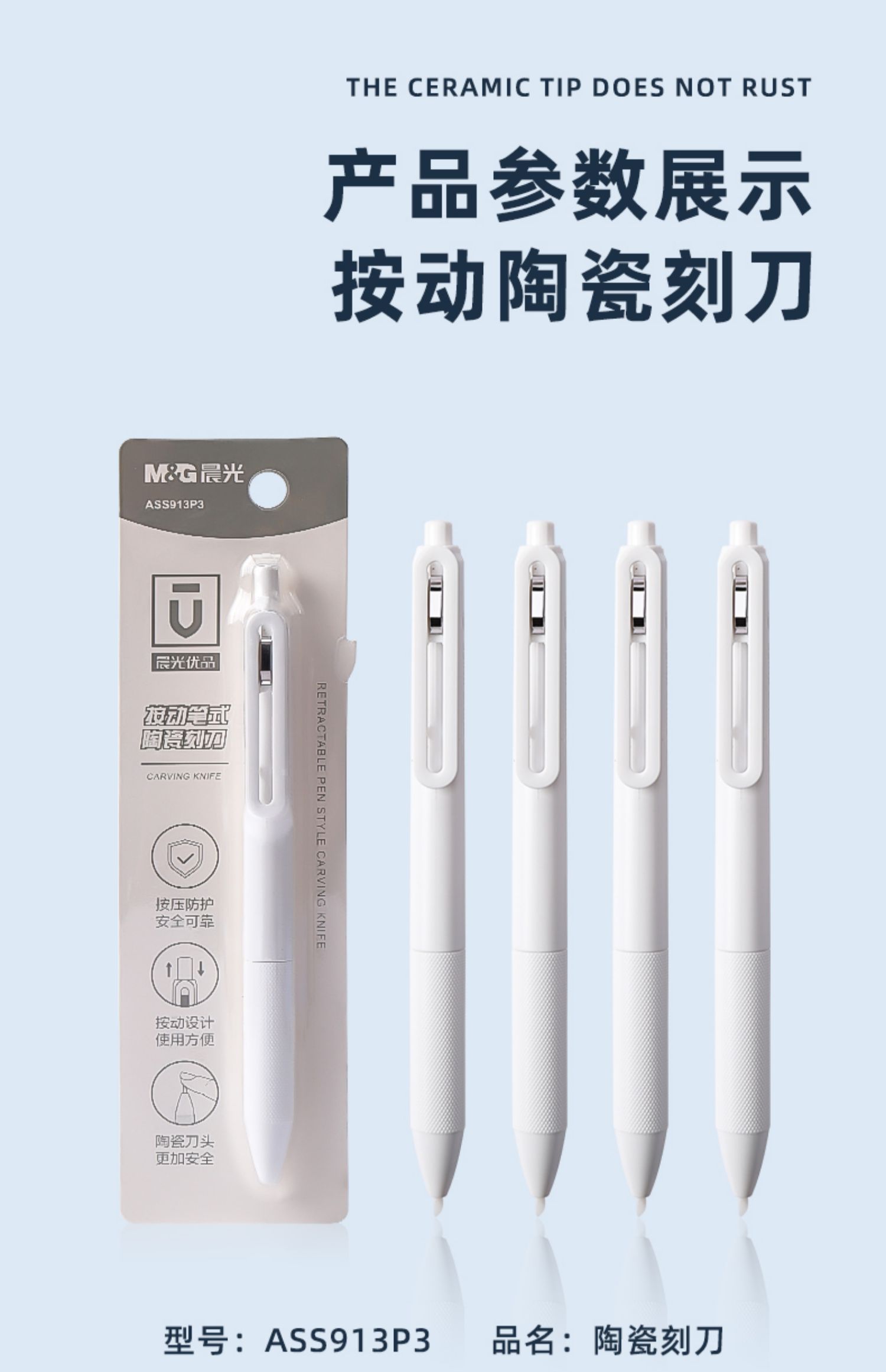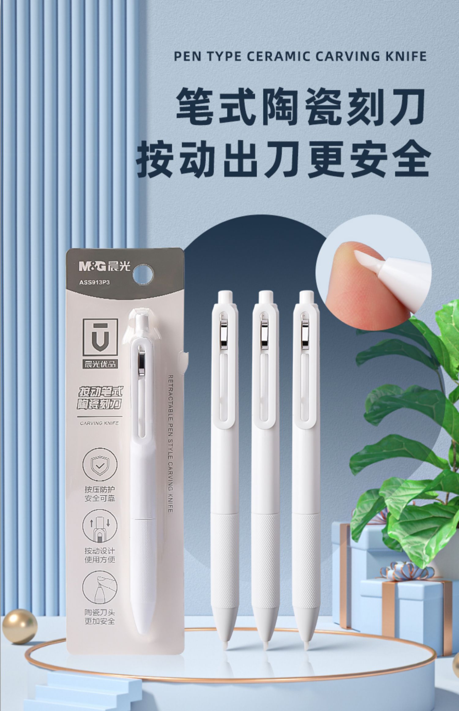 晨光优品按动笔式陶瓷刻刀美术裁纸刀便携迷你美工刀ASS913P3