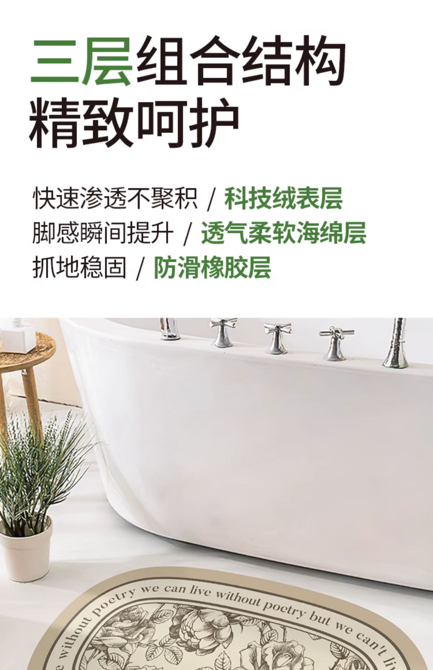 慢说浴室地垫天然橡胶底浴室垫 文字环绕月季/豆蔻白茶【双11家居生活福利专场】
