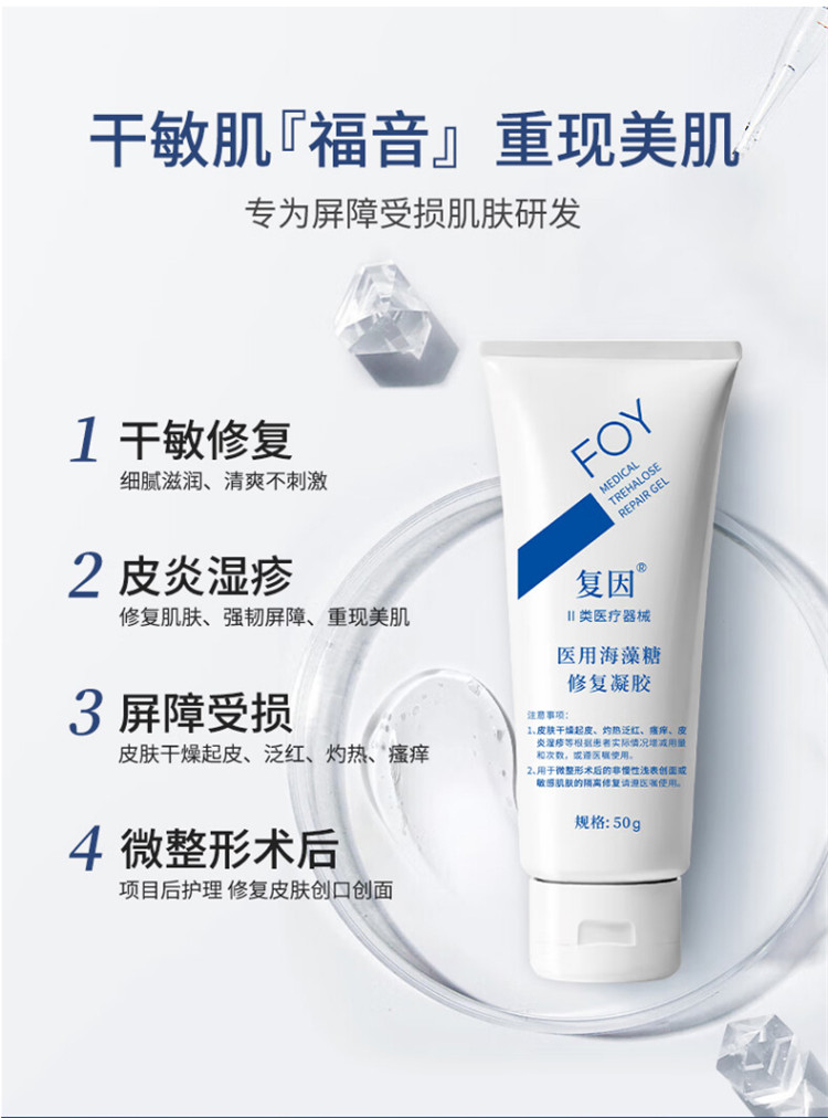 复因(FOY)医用海藻糖修复凝胶 50g 皮肤敏感肌皮炎修护