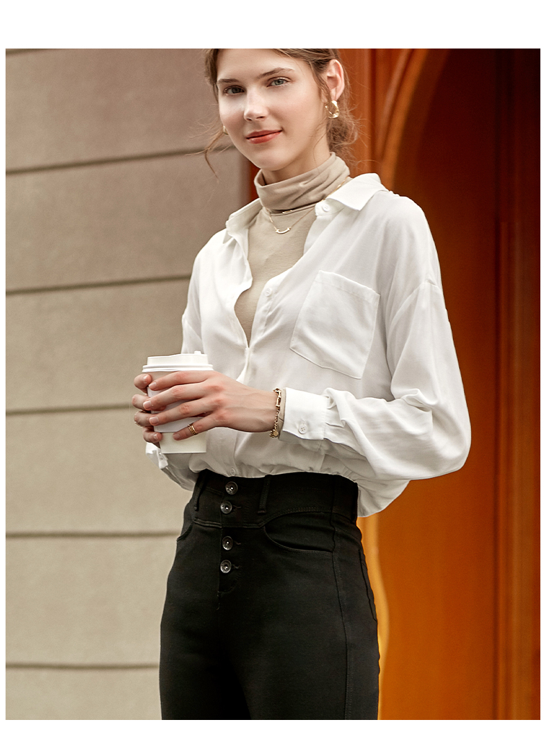 OLrain欧芮儿2026春米白色简约慵懒休闲长袖T恤圆领上衣女