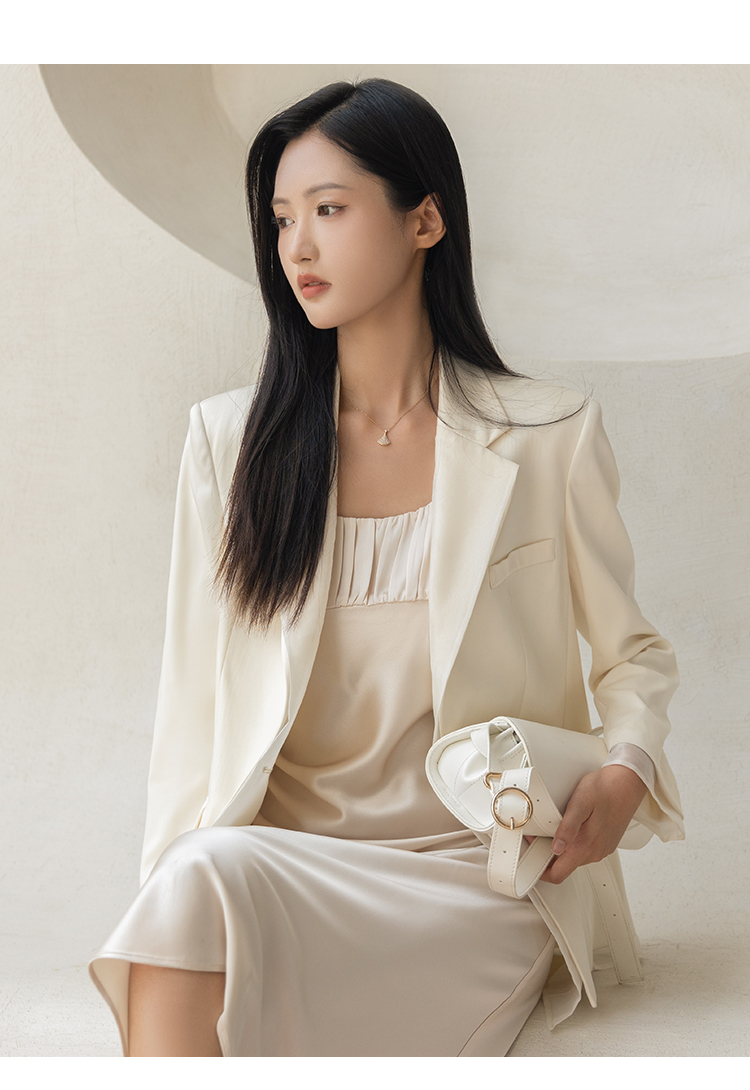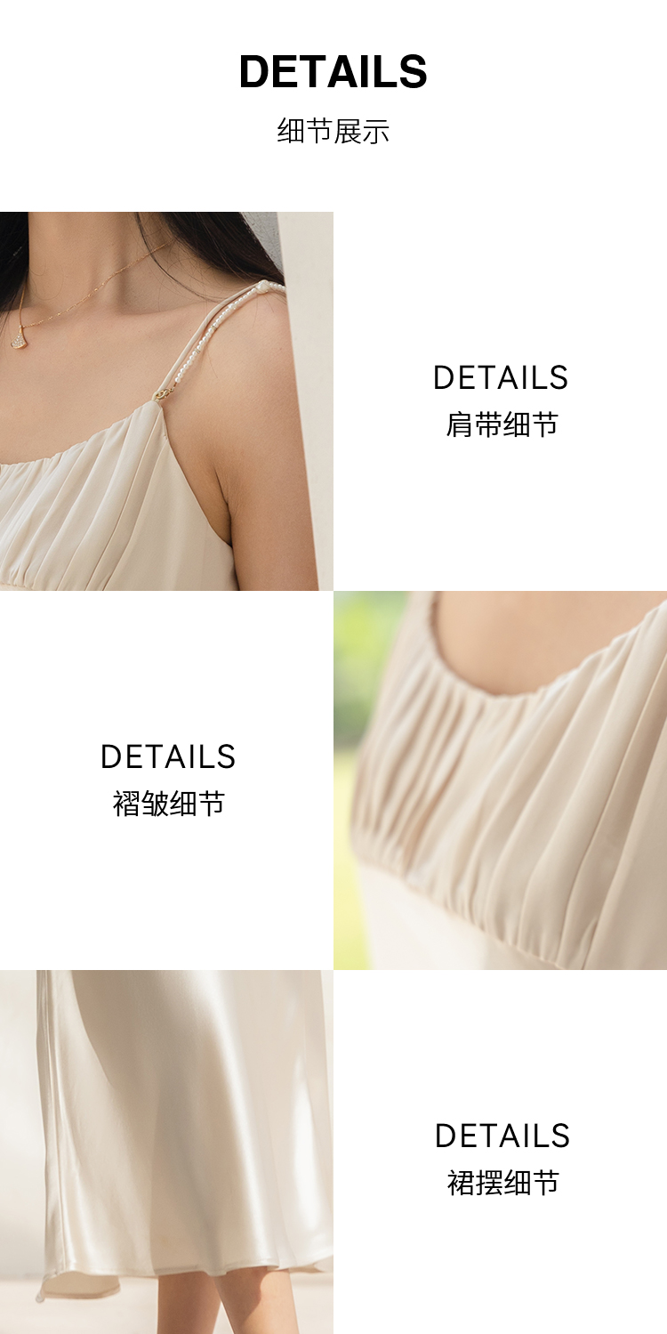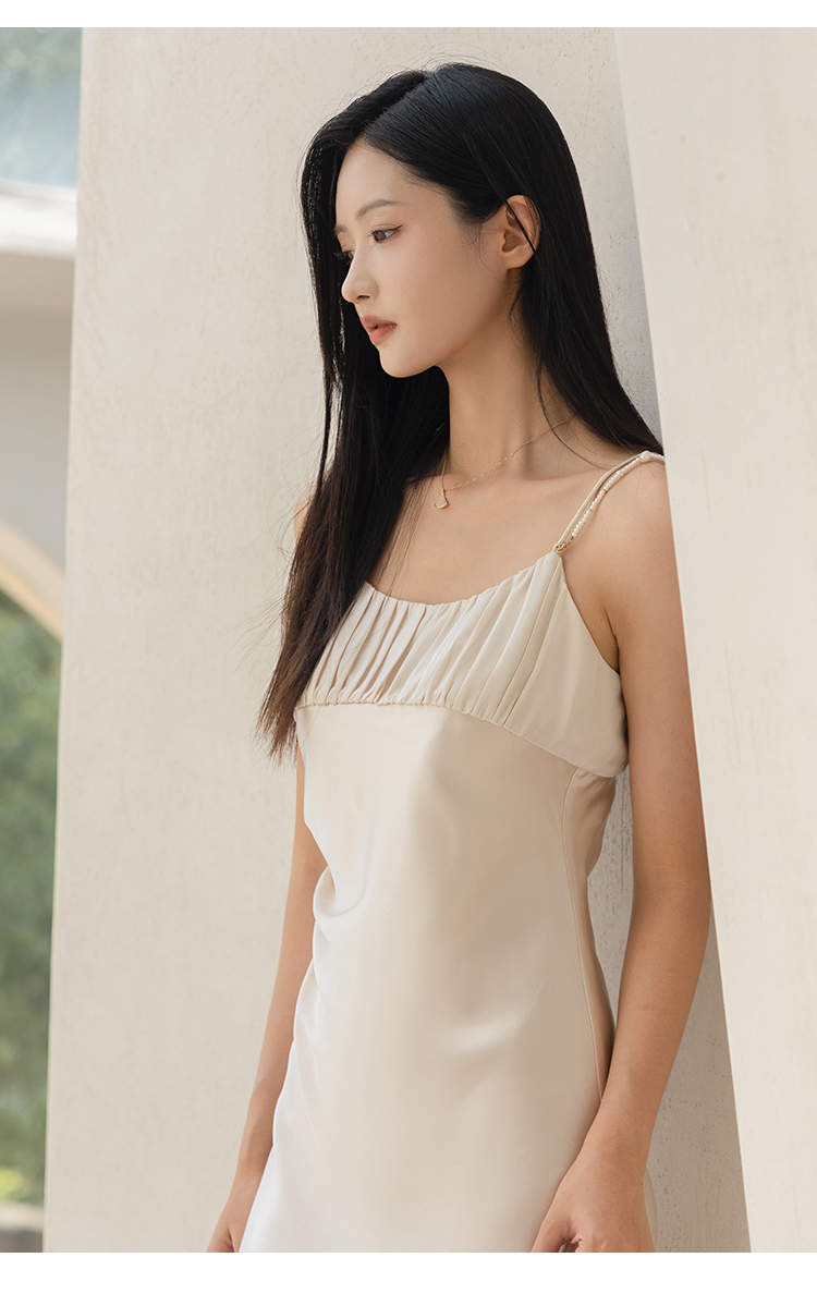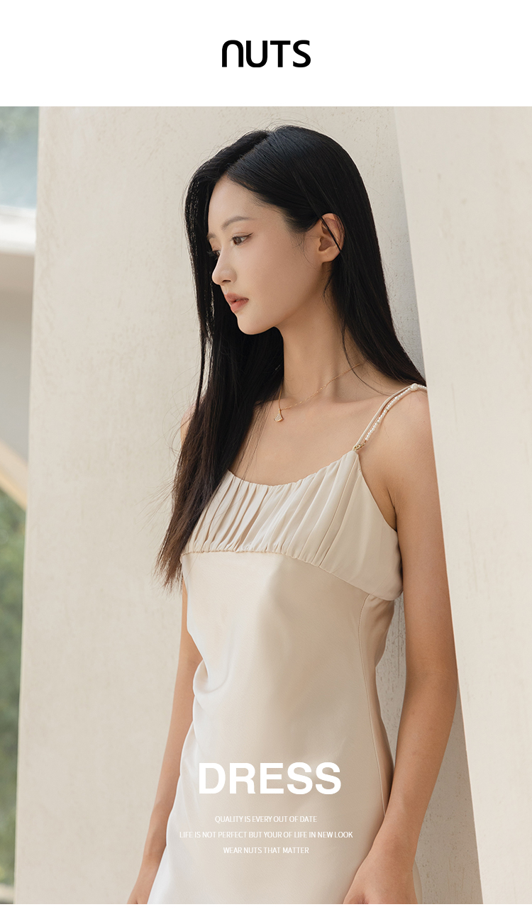 NUTS气质女神设计感小众绸缎褶皱系带显瘦连衣裙轻熟风4321002A1