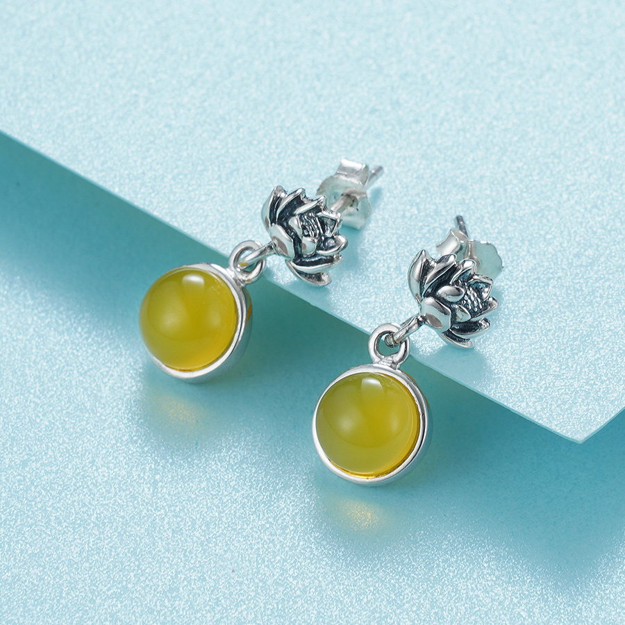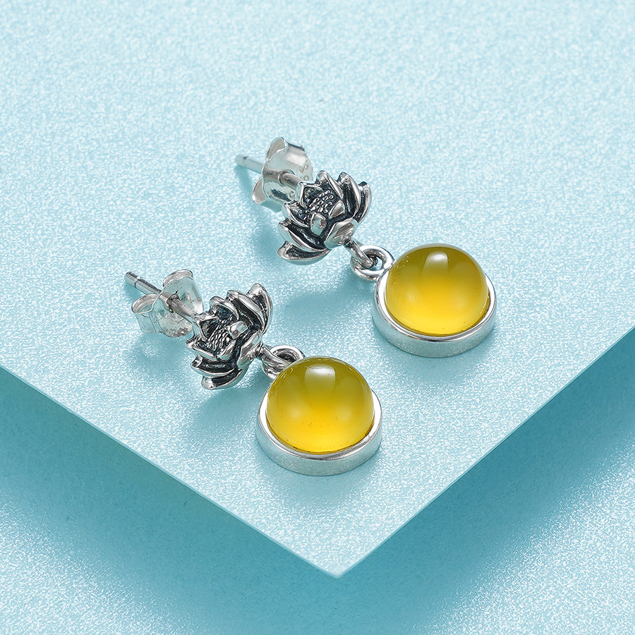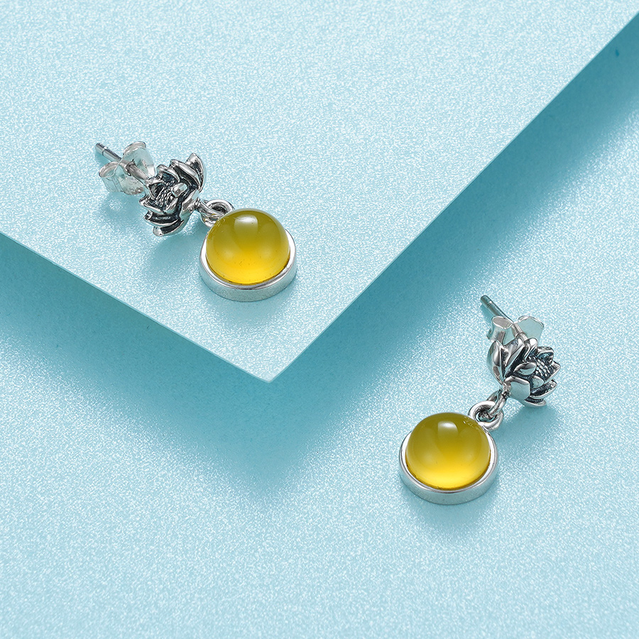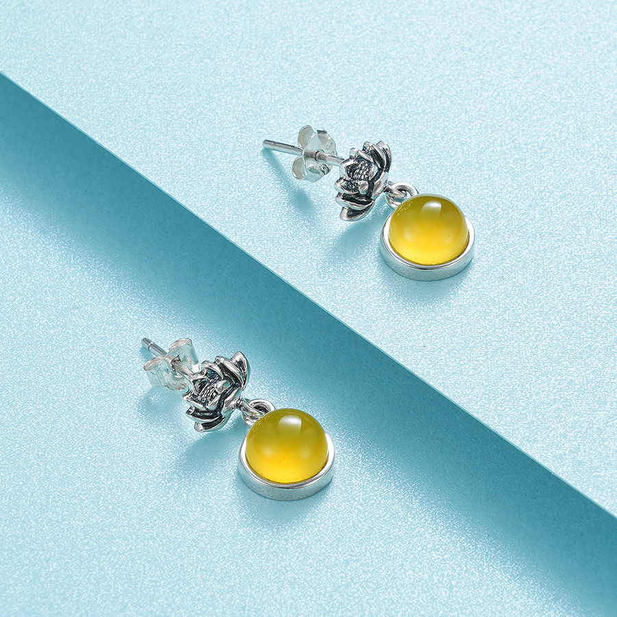 子佩集S925银【灵玉莲下】黄玉髓耳钉【FLEC106】2110