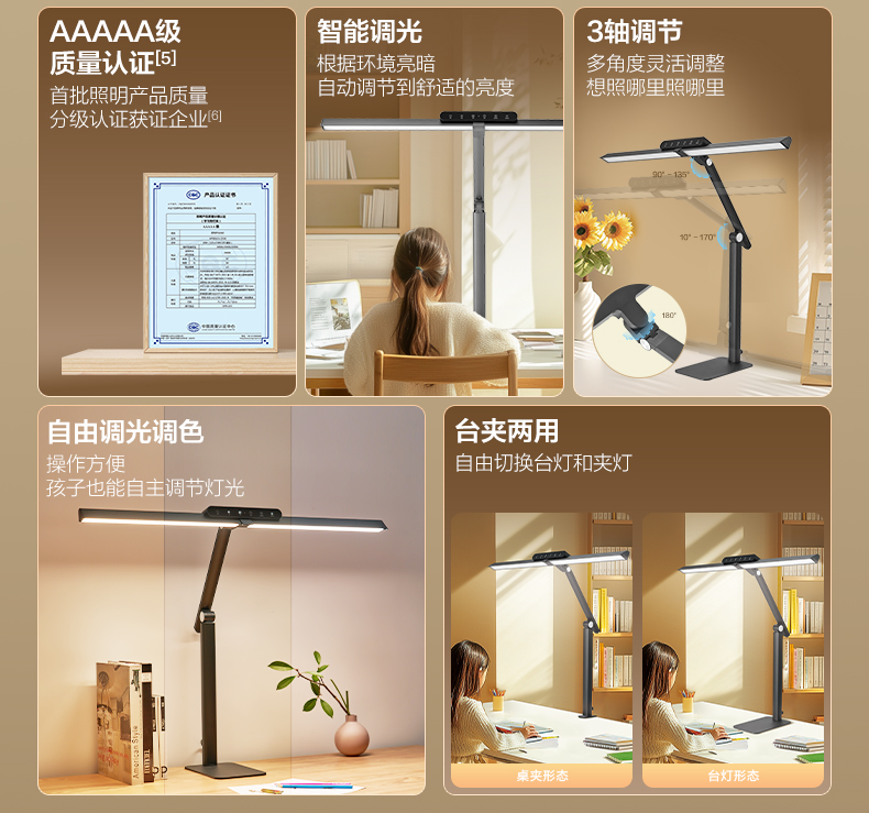 欧普(OPPLE)AAAAA级全光谱护眼学习桌面小路灯可夹式防近视儿童书桌面写作业博悦Plus