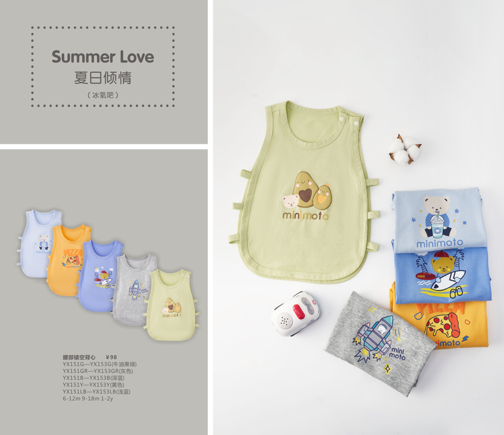 小米米童衣夏日倾情镂空背心/牛油果/灰色/浅蓝/黄色MIM-YX15