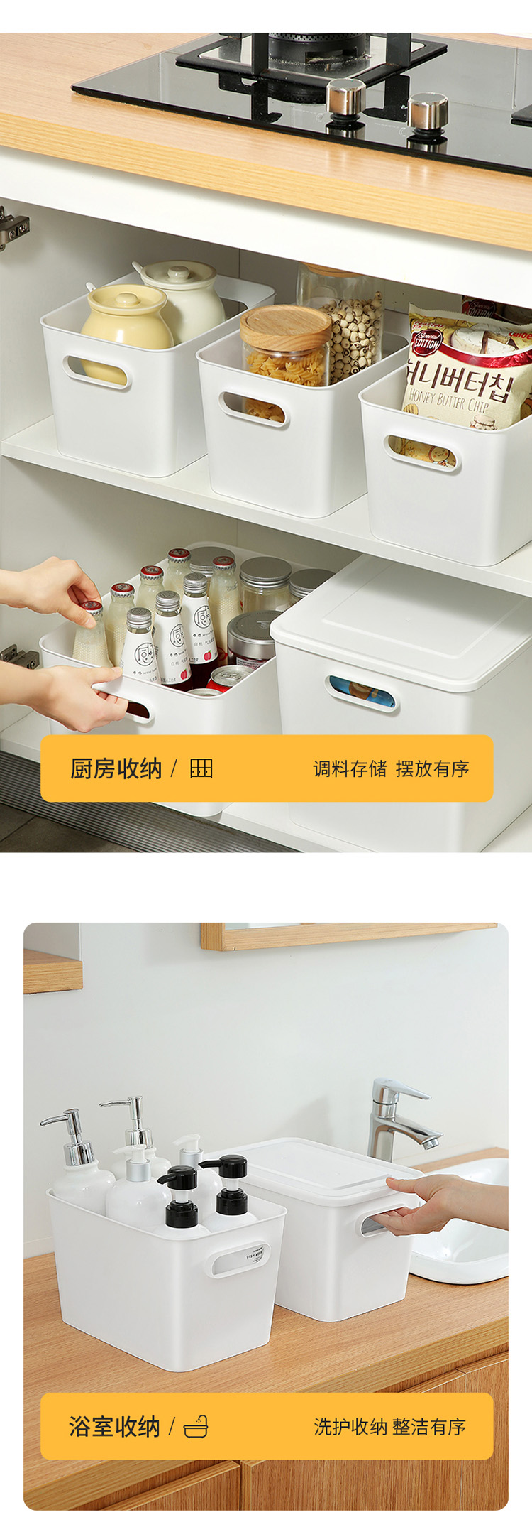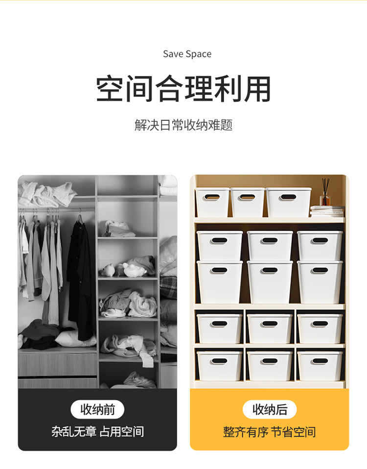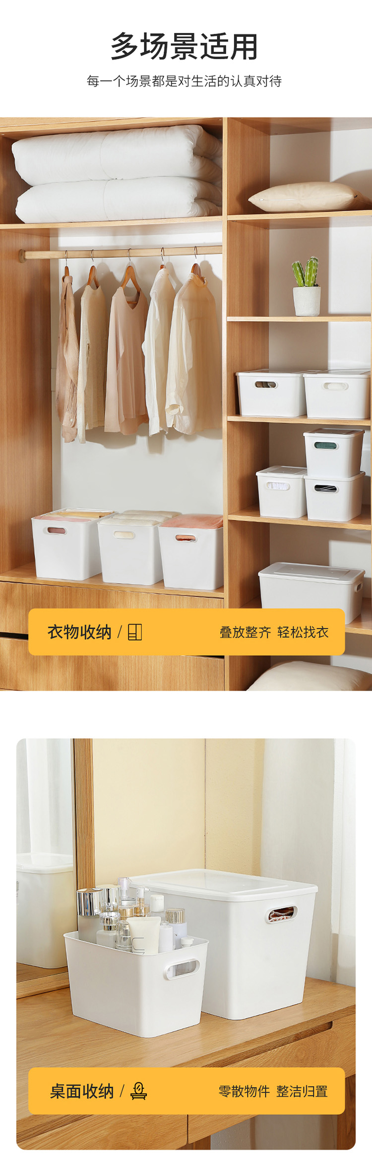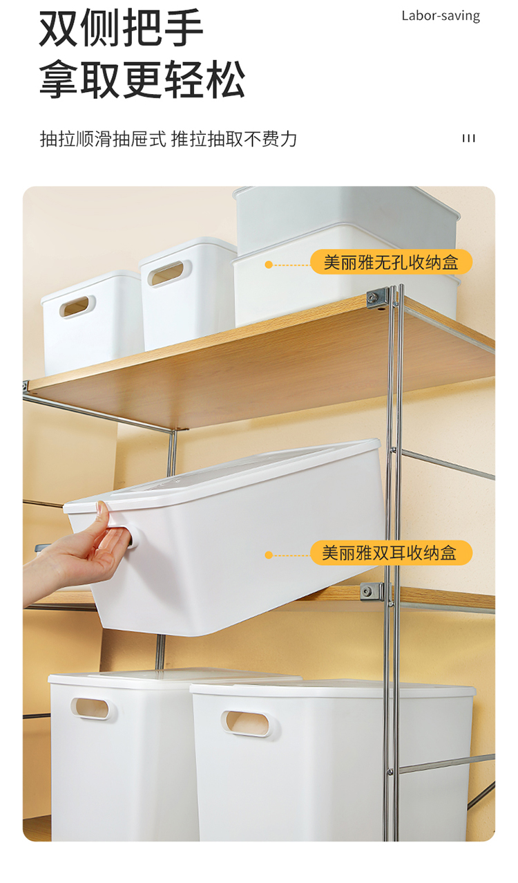 【美丽雅收纳盒】桌面收纳盒化妆品零食玩具杂物储物盒塑料带把手带盖收纳筐