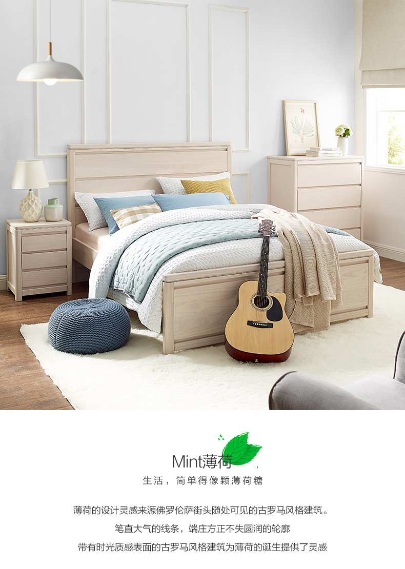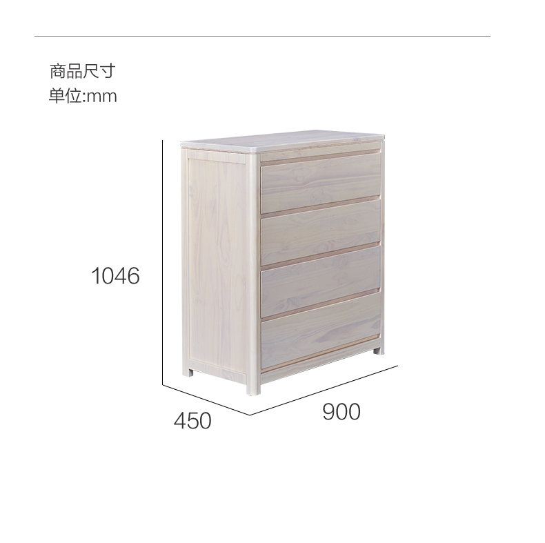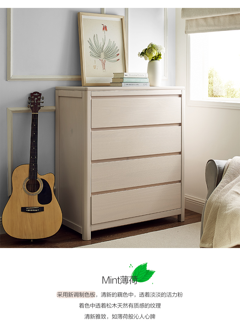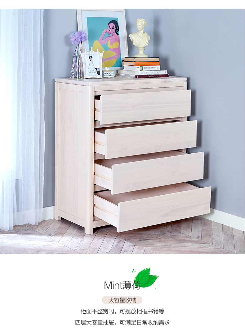 喜梦宝全实木斗柜现代简约四斗柜松木置物柜带抽屉储物柜子 薄荷