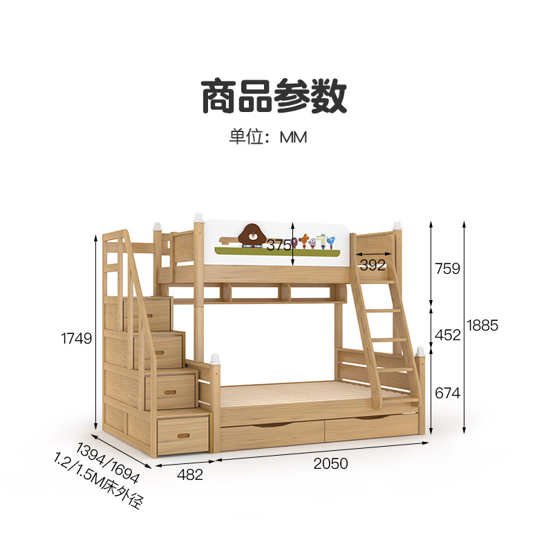 喜梦宝双层床儿童床上下床现代简约子母床上下铺组合高低床 道奇