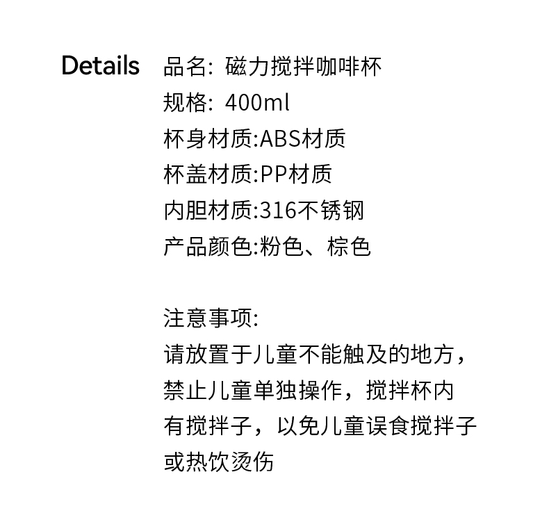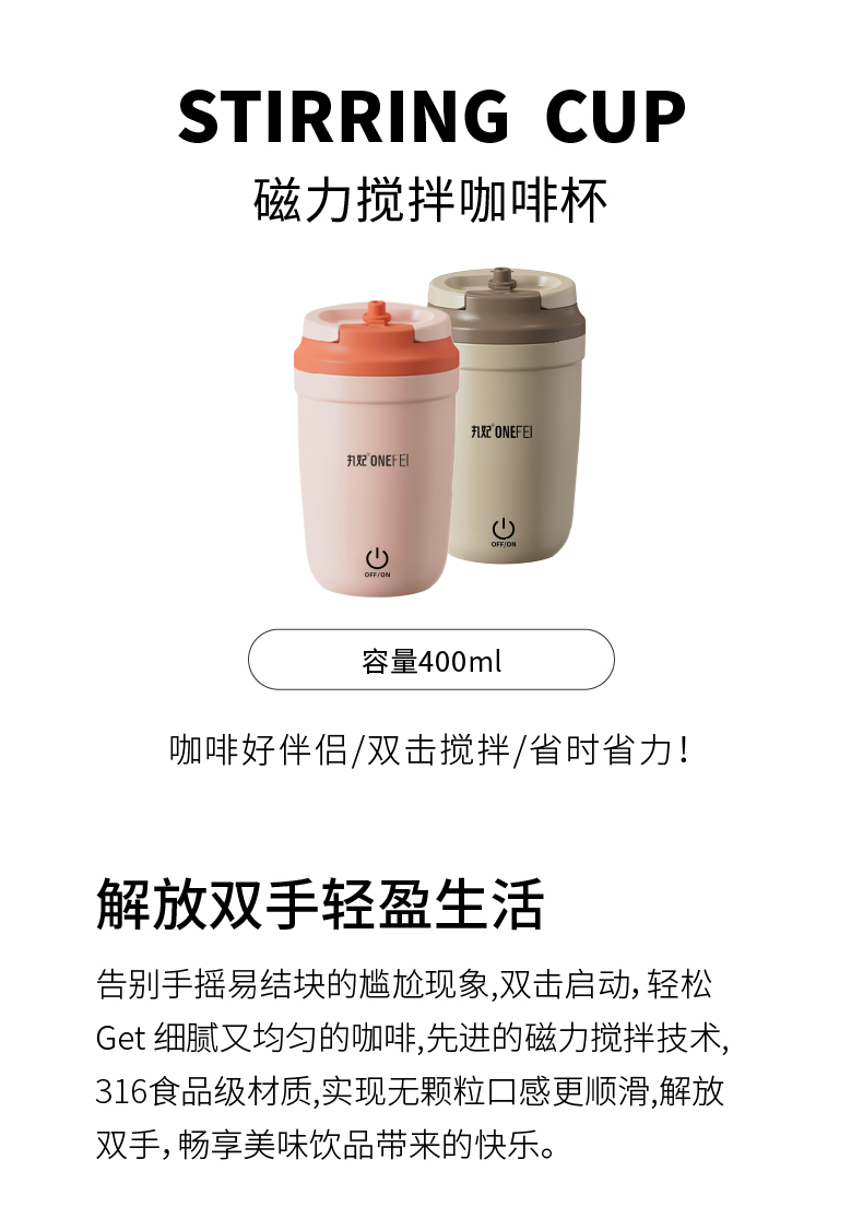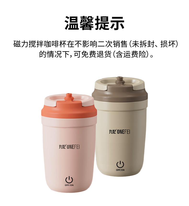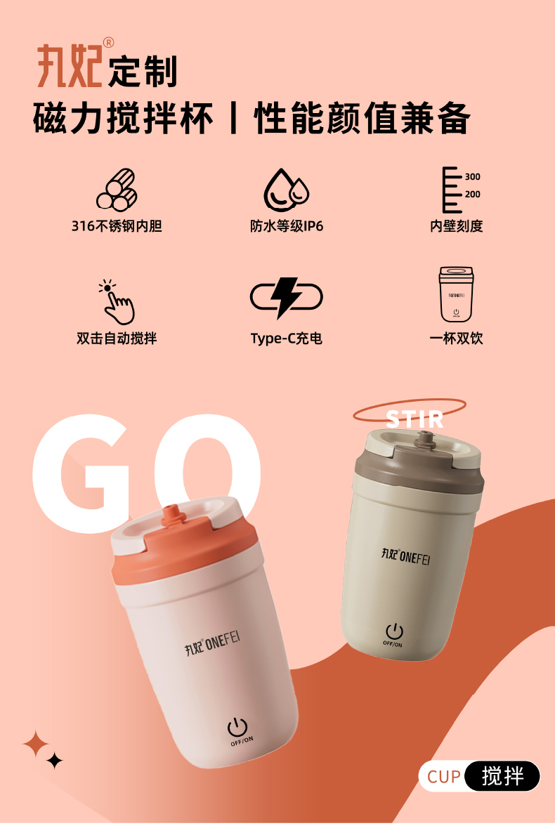 丸妃磁力搅拌咖啡杯粉色咖啡色全自动搅拌省心省力搅拌均匀方便