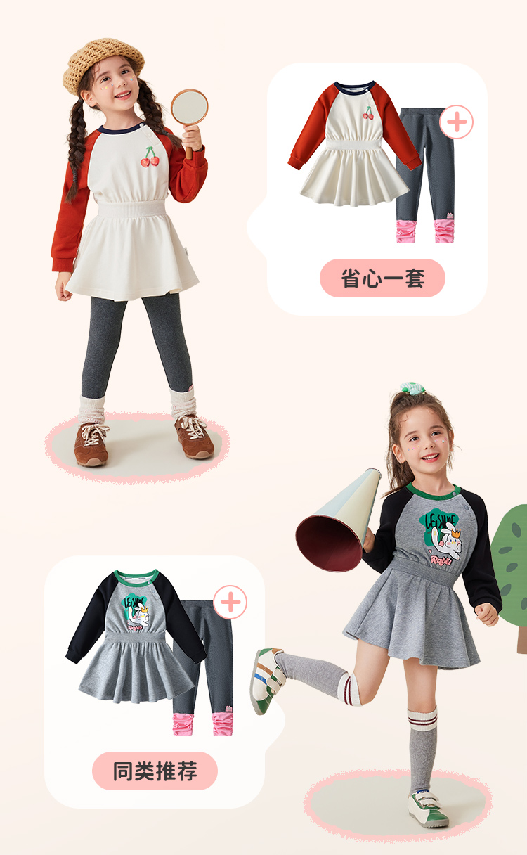 【英氏】【两件套】【110-170】女童春秋卫衣打底裤套装