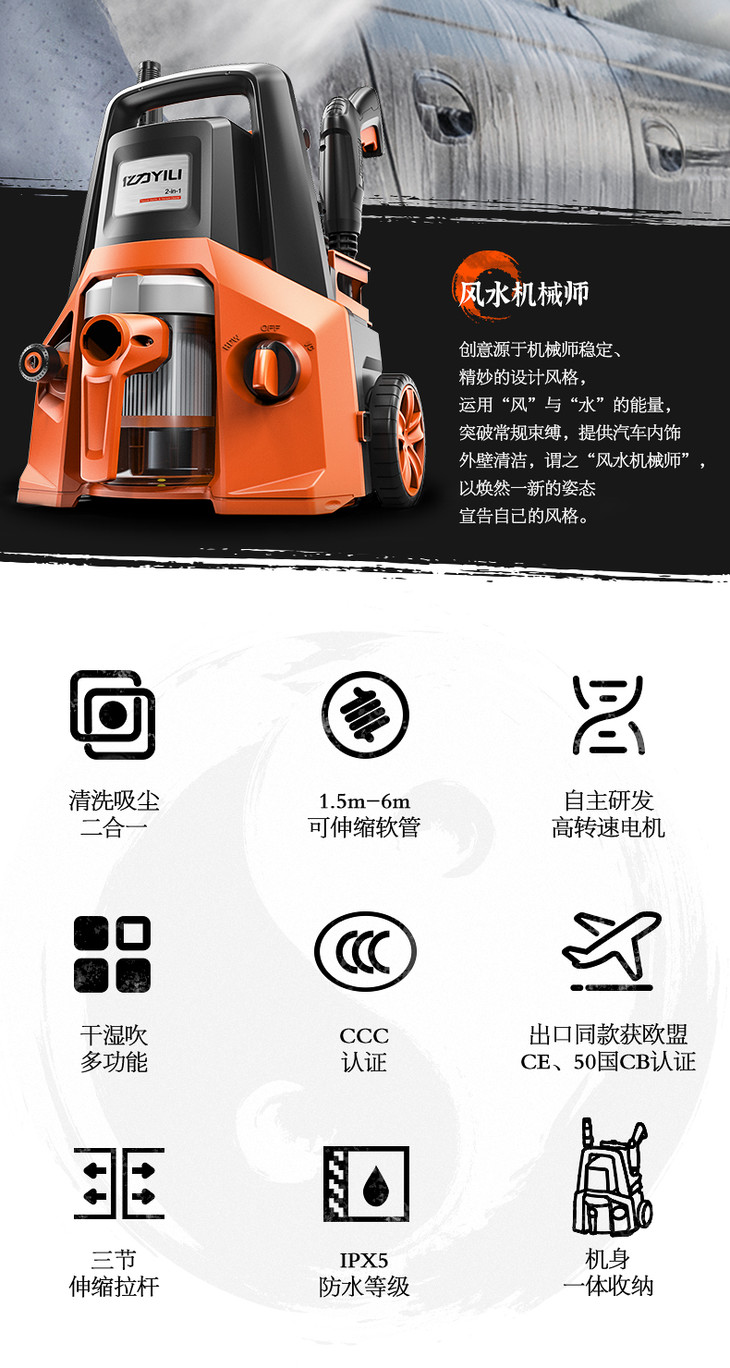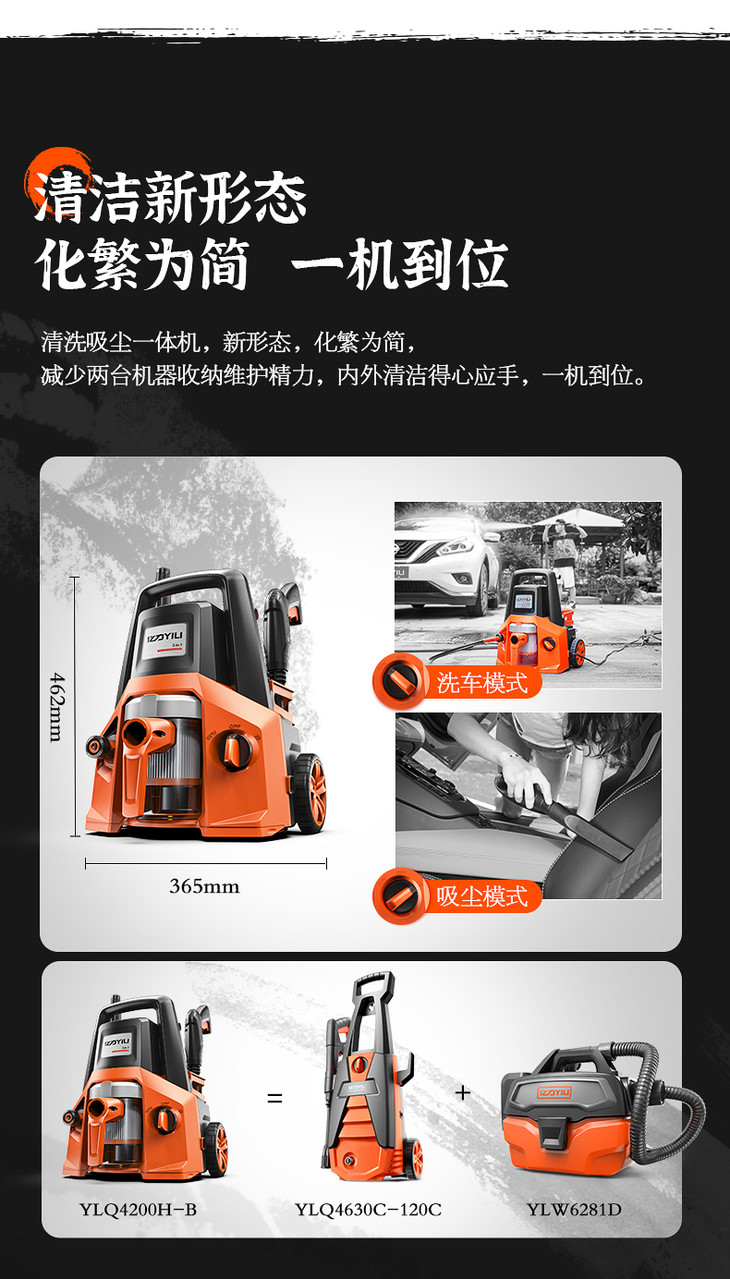 【小店】亿力YLQ7301家商用高压清洗机洗车机大功率汽美水泵高压水枪强力冲地