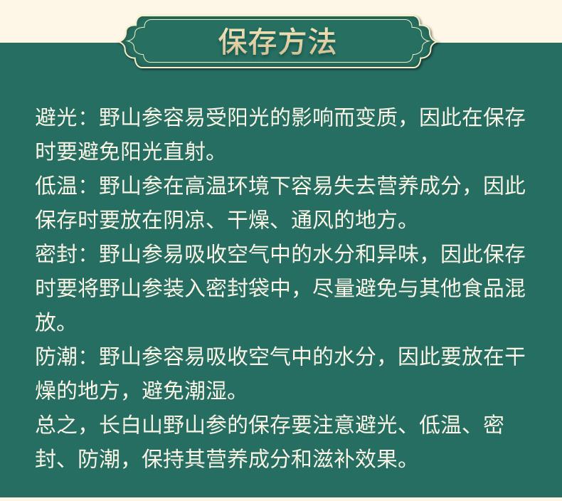 需要注意的是,长白山野山参属于滋补品,不能过量使用,一般建议每日服用3~5克,长期服用效果更佳。