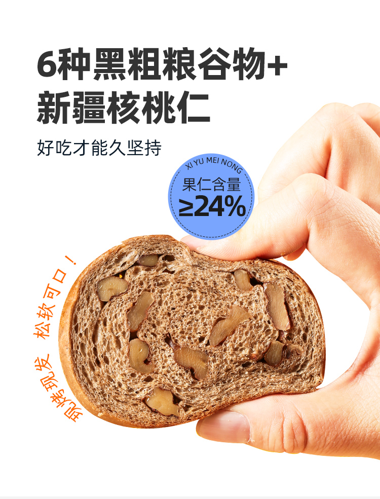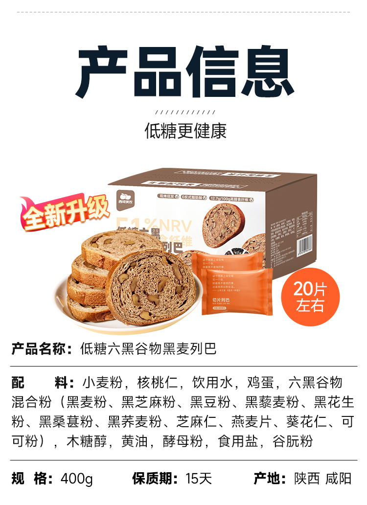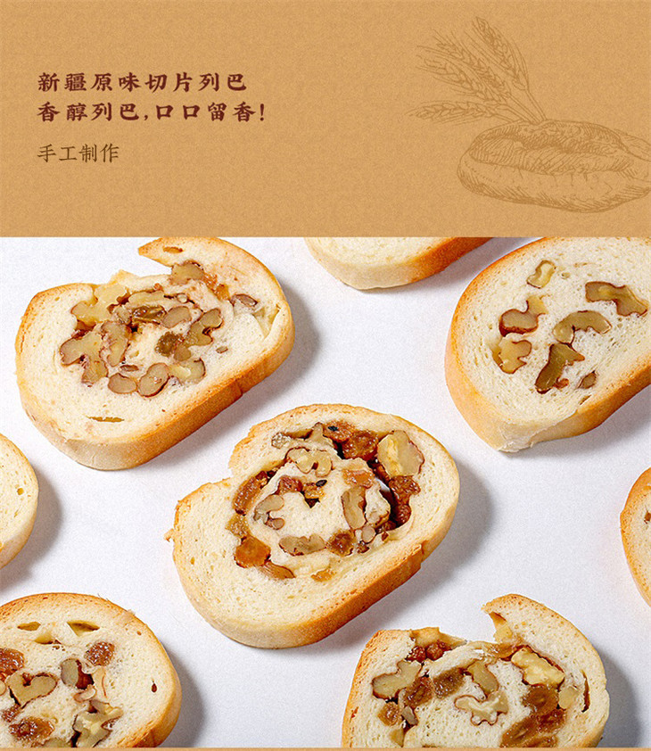 配方升级,终于来啦!没忍住又买了的大列巴。西域美农新疆风味,切片黄油果仁列巴 400g/箱