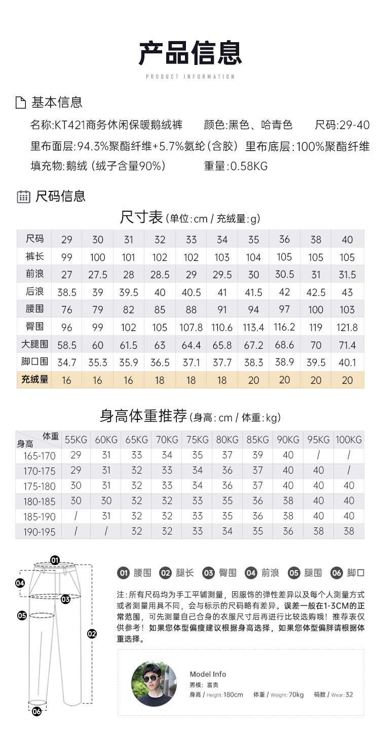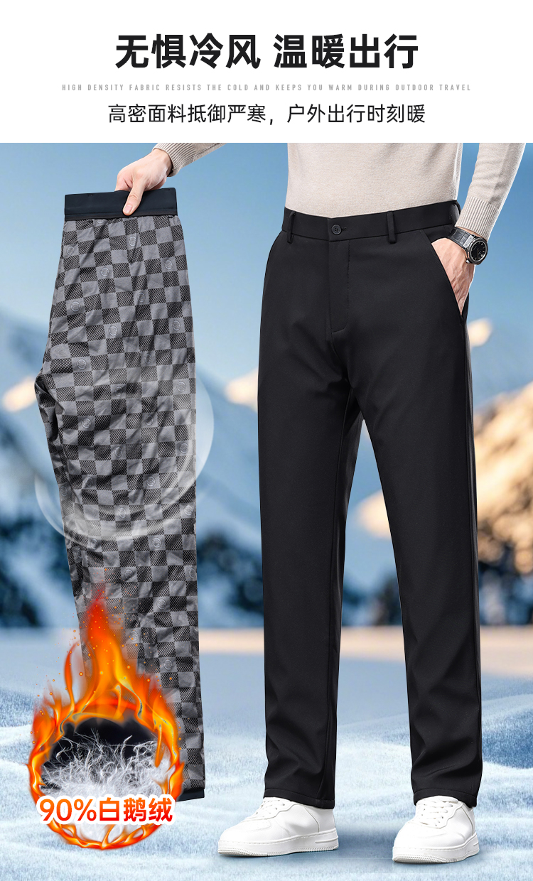 【实付满399送保温杯】【商务休闲保暖鹅绒裤】 防风保暖羽绒长裤白鹅绒直筒加绒裤KT421