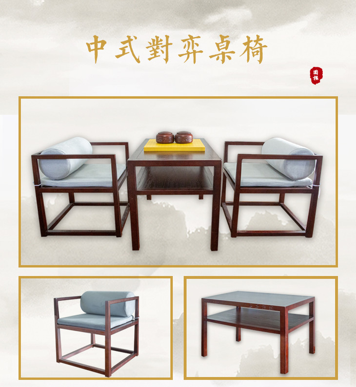 中式对弈桌椅白蜡木材质高端棋院会客