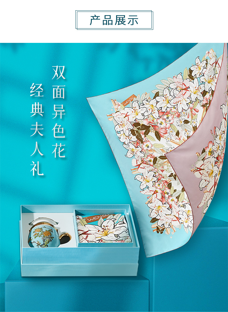 万事利夫人礼丝瓷套装(双面异色大方巾+瓷器)