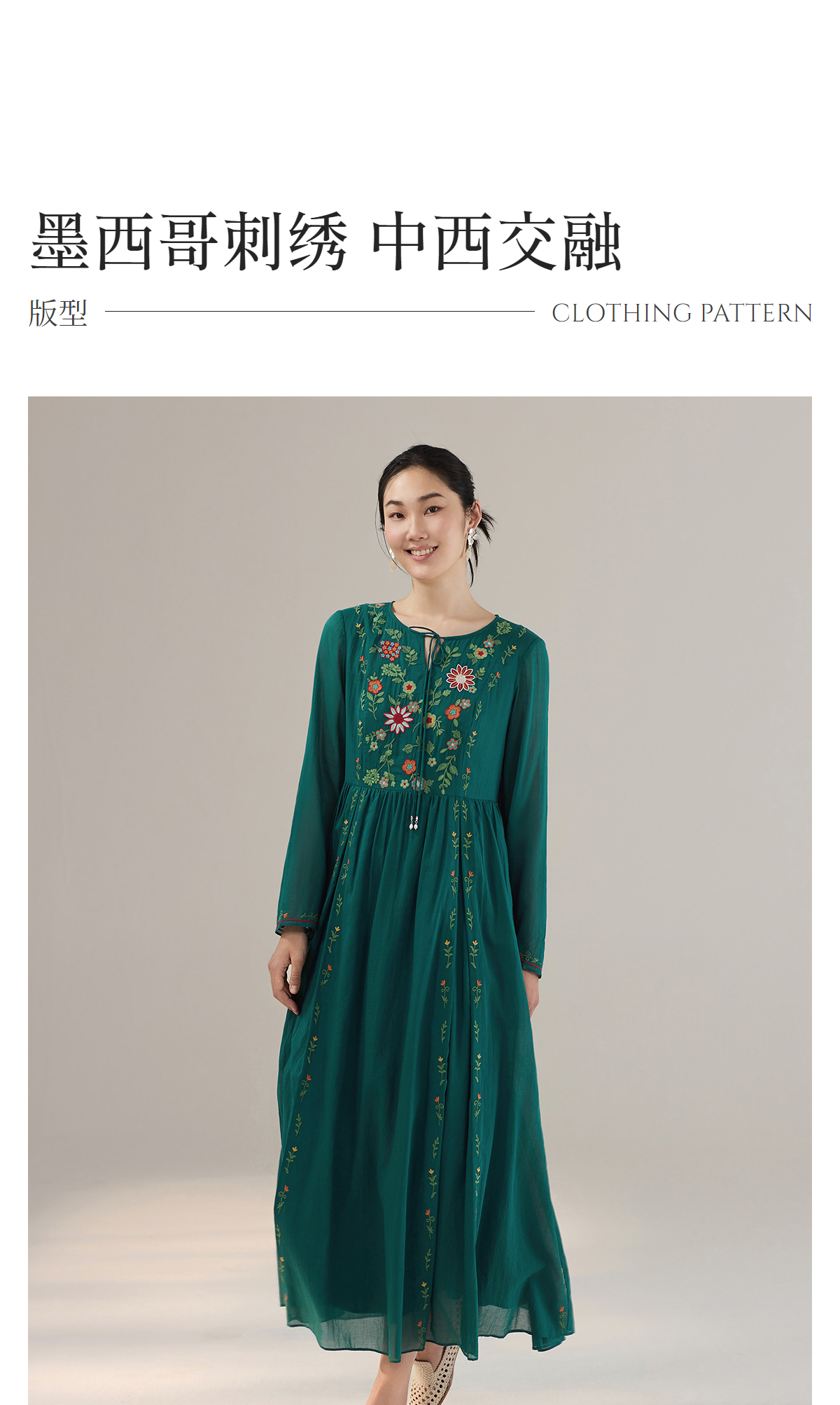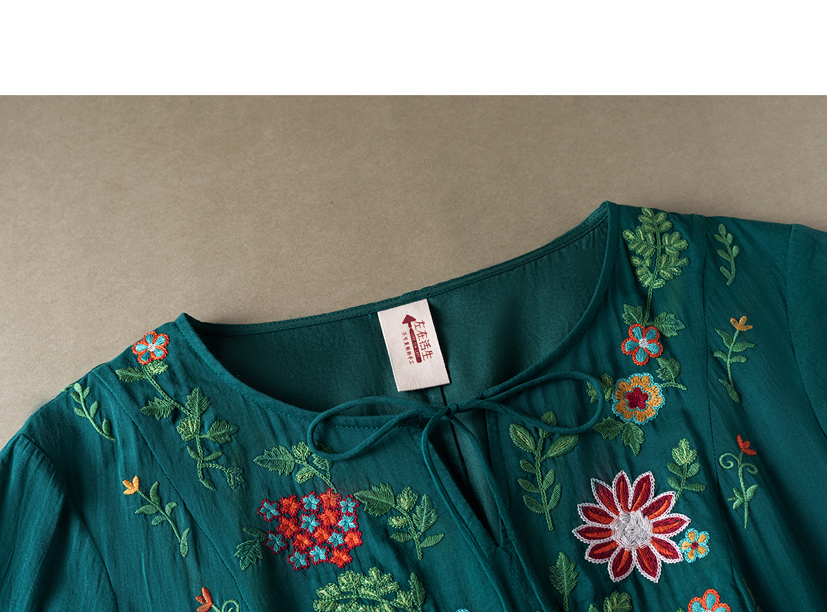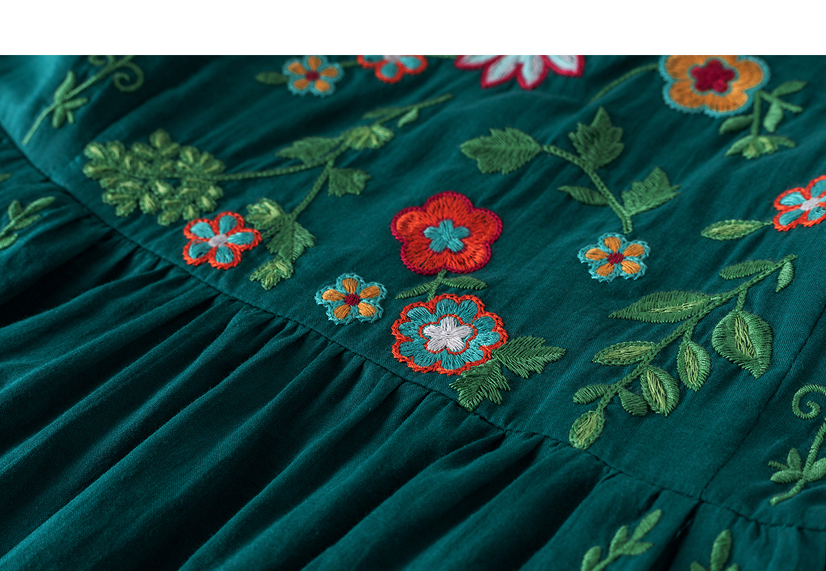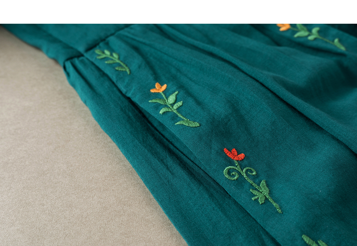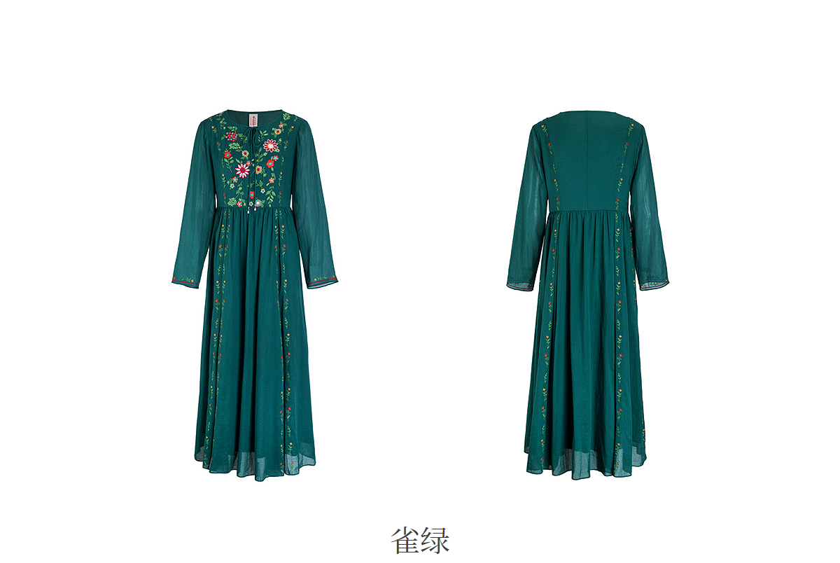 【林栖设计小店】婴儿棉连衣裙墨西哥绣花优雅气质宽松2025秋冬新款长裙女T1954113